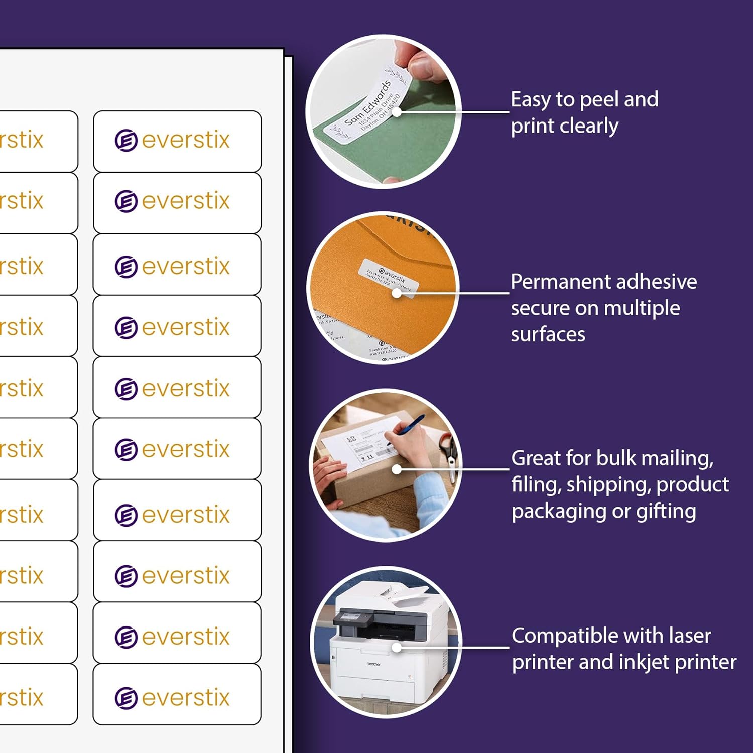 1" x 2-5/8", 25 Sheets, 750 Mailing Address Labels, White Sticker Labels for Laser & Inkjet Printers, Permanent Adhesive