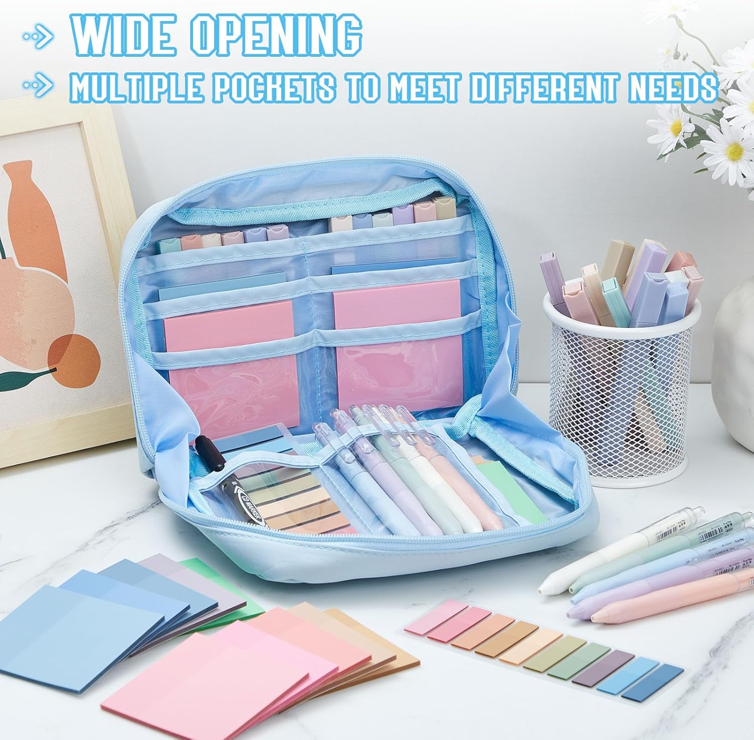 - Daily Use: aesthetic school supplies are suitable for everyday use, including 12 highlighters, 5 ballpoint pens, diverse colors, 1 blue pen case, 1 marker pen, 10 pads of square sticky notes (500 sheets), 1 pad of sticky index tabs (200 sheets), gratifying your daily use and replacement demands for journal, notepad, work, study notes, bible study available for family, office, travel and so on