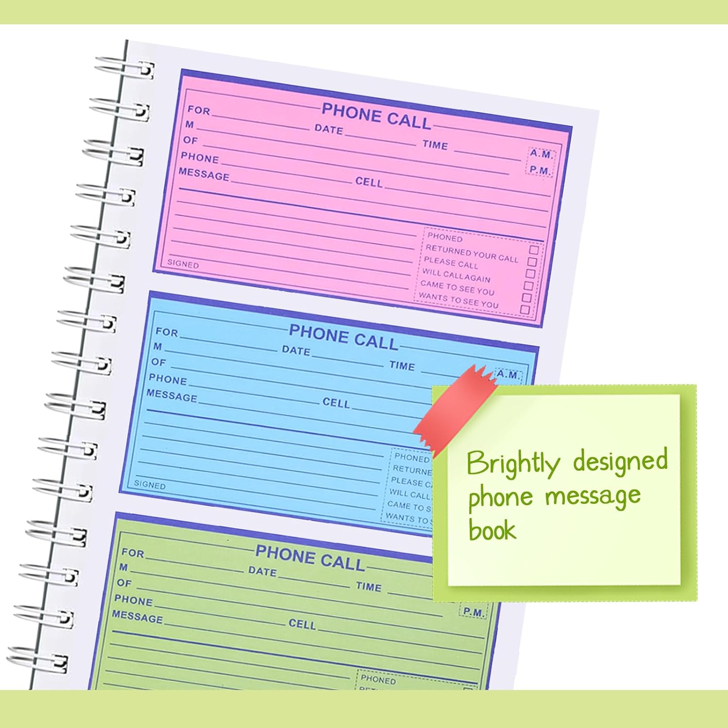 - Spiral Design: Thanks to the spiral binding of the spiral bound bhone message book, turning pages to locate specific call information is simple; Even if you tear a page, the rest of the message pads remain intact, making the process easier