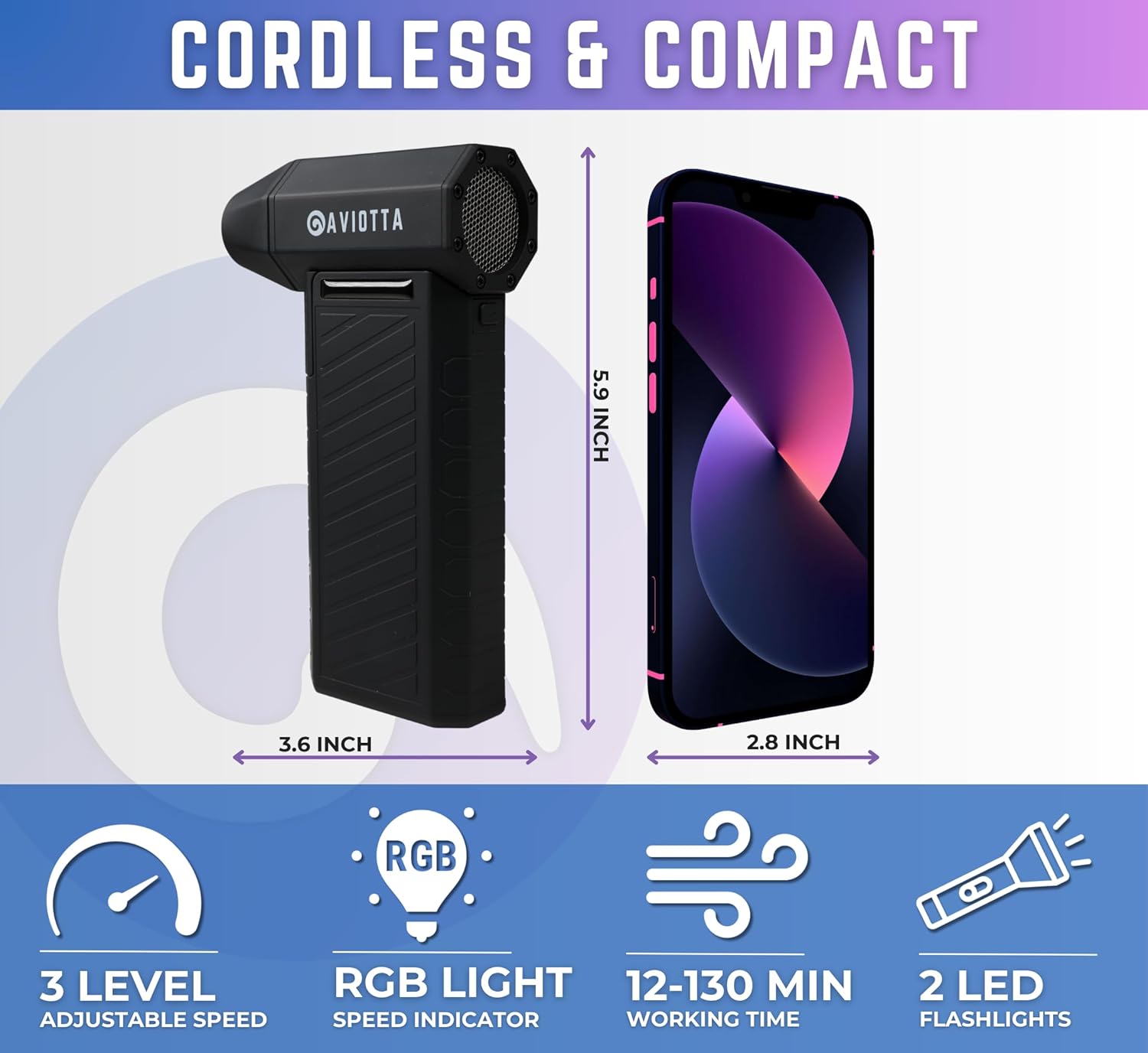 - [ CLEAN EFFORTLESSLY ] - Power & Luxury of Aviotta Air Duster. Thanks To Its Special Coating, Upgraded Motor Technology & Large Capacity Battery, This Compressed Air Duster Rechargeable Is The One You Need To Transform Your Cleaning & Give Second Life To Your Surroundings.