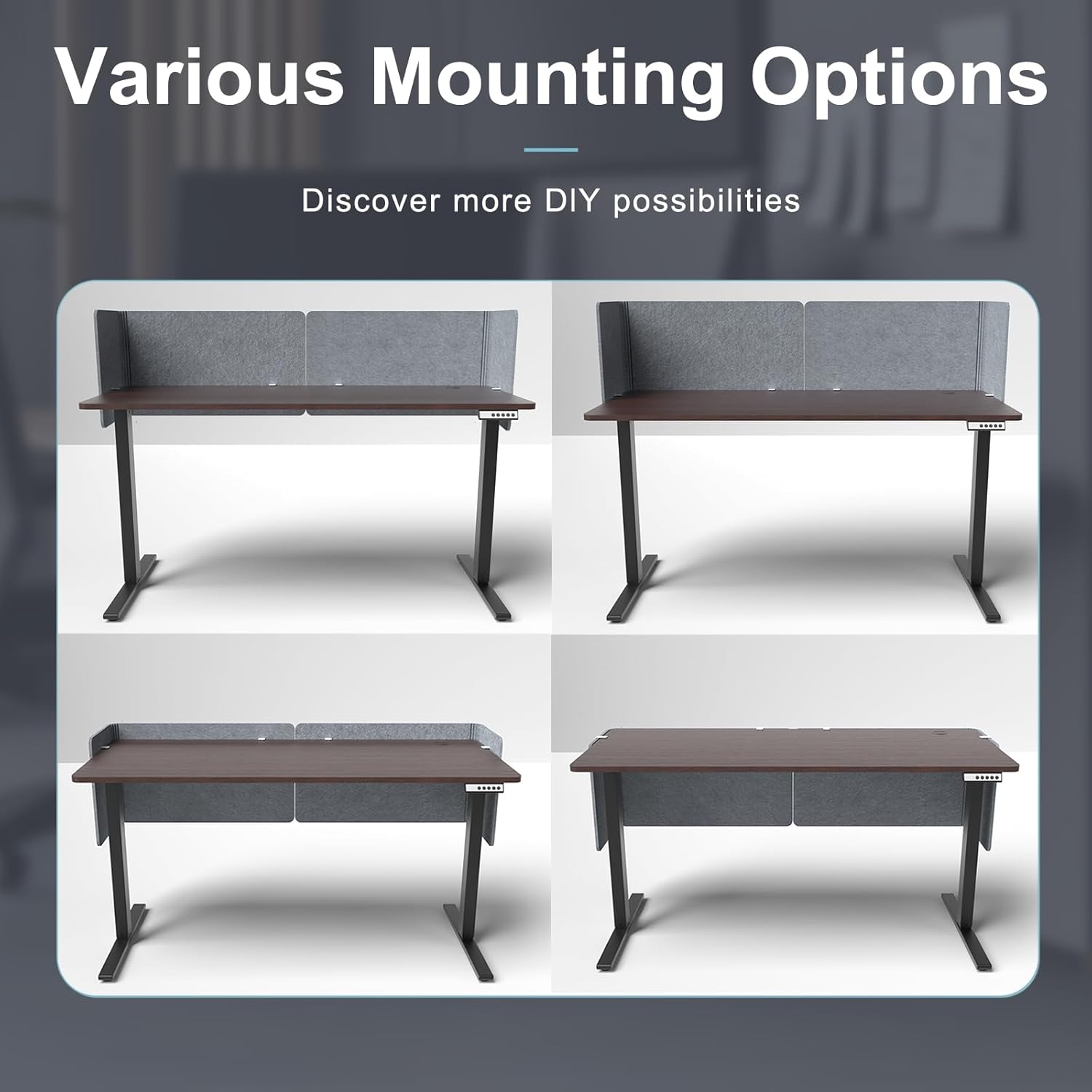 - 2 CLAMP-ON PRIVACY PANELS β This desk privacy set includes two 27.5"+11.8" x 15.7" L-shaped panels that cover 3 sides of your desk, creating a distraction-free workspace. Panels can be mounted above or below the desk.