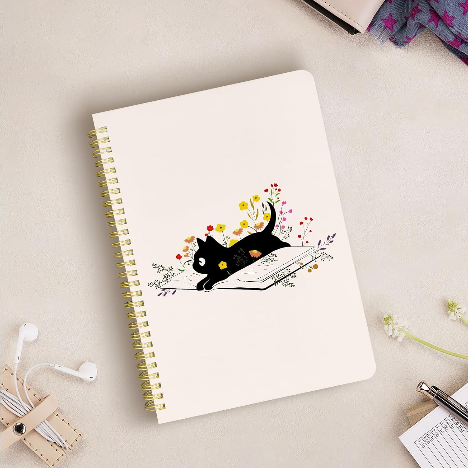 Cute Spiral Notebook journal B5 Aesthetic Pretty Design for Women Girls Kawaii with Pocket, 10 x 7.2 inch, Lined, Cat Book
