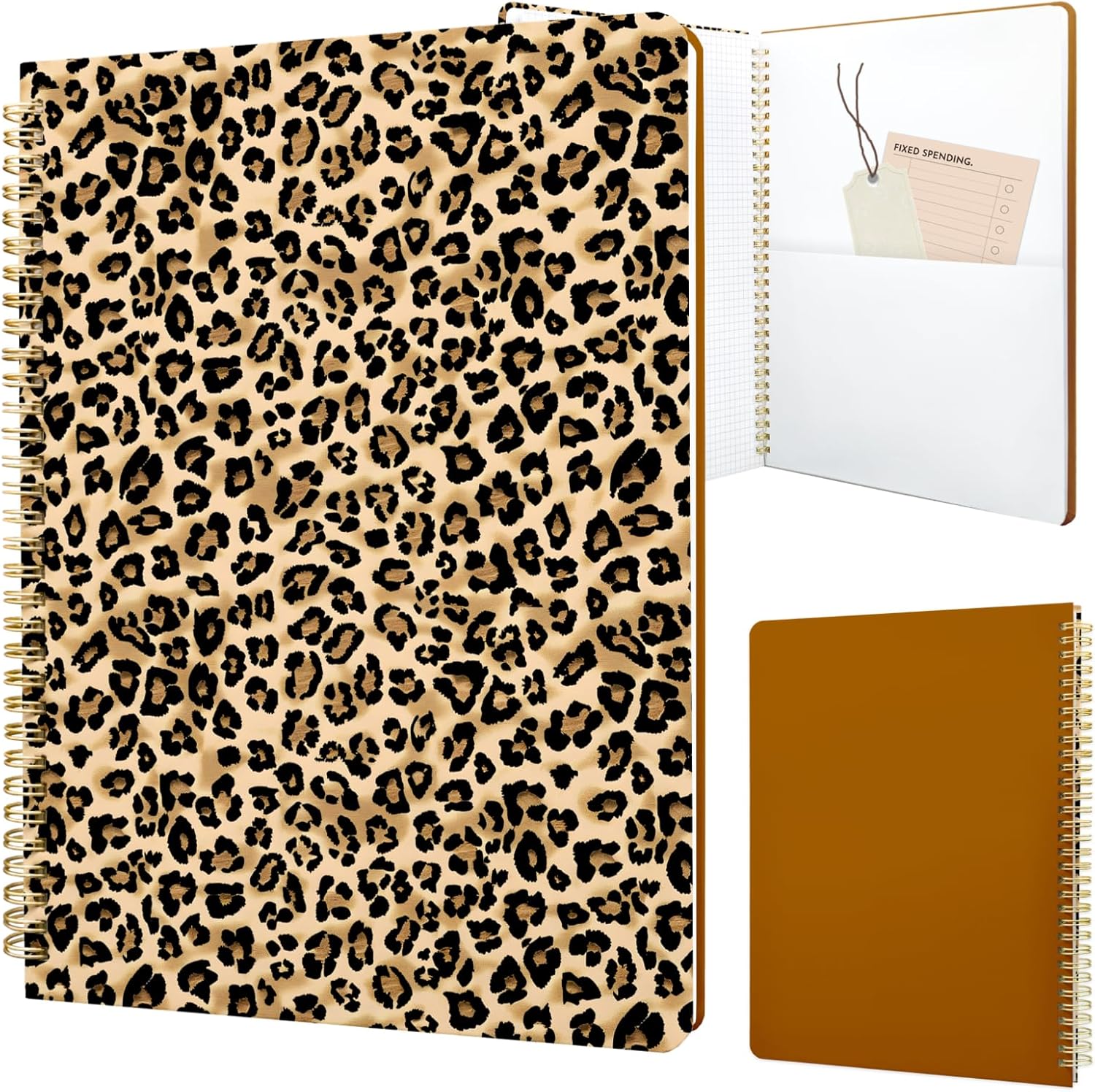 Cute Spiral Notebook journal A4 Aesthetic Pretty Design for Women Girls Kawaii with Pocket, 8.5 x 11 inch, Graph, Leopard