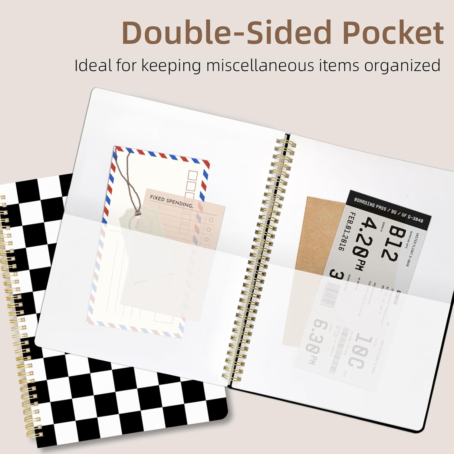 Cute Spiral Notebook journal A4 Aesthetic Pretty Design for Women Girls Kawaii with Pocket, 8.5 x 11 inch, Graph, Black Plaid