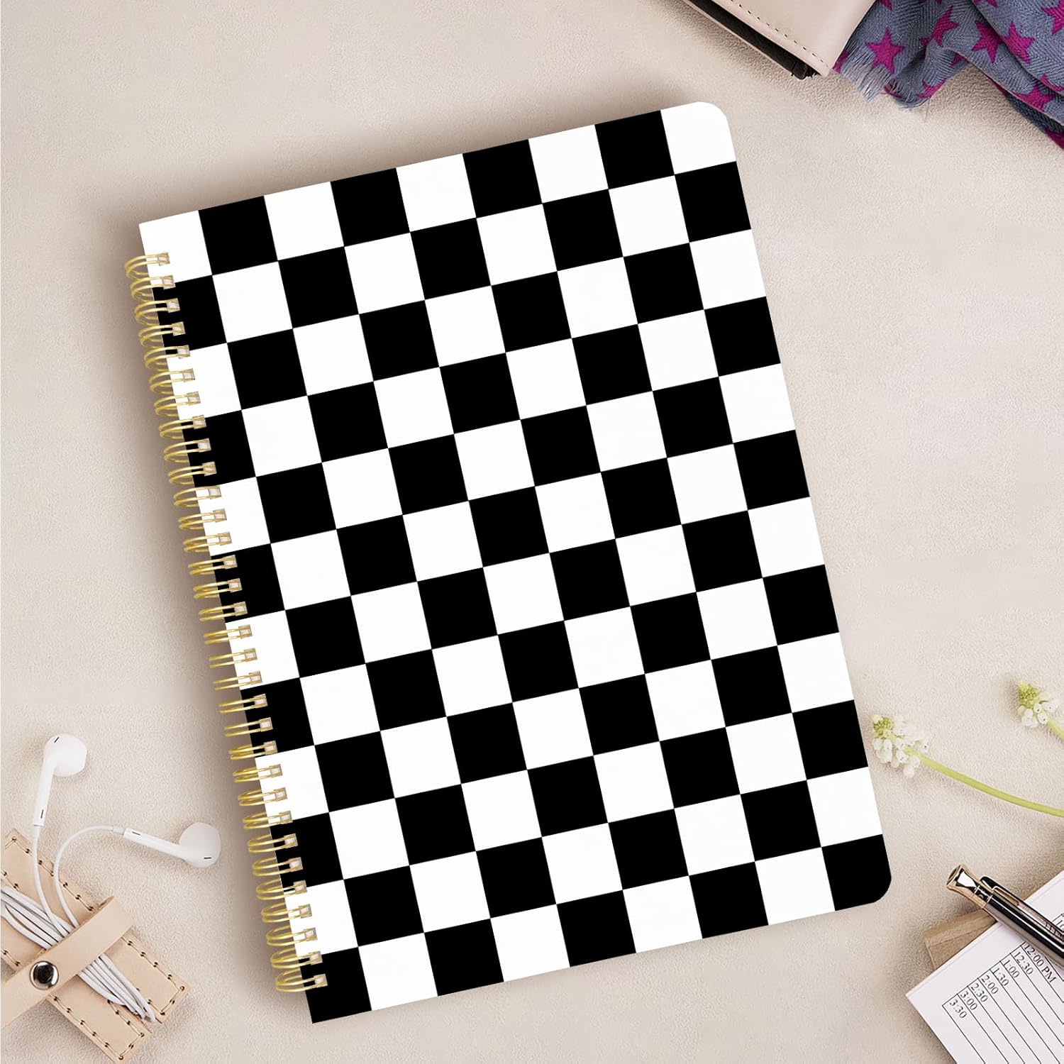 Cute Spiral Notebook journal A4 Aesthetic Pretty Design for Women Girls Kawaii with Pocket, 8.5 x 11 inch, Lined, Black Plaid