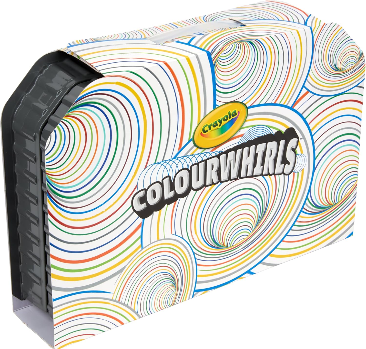 - CRAYOLA COLOURWHIRLS ARENA SET: Includes 1 Arena for 4 players, 4 Colourwhirl toys, 4 Markers, 2 Ramps, and a Carrying Case for colorful fun anywhere.