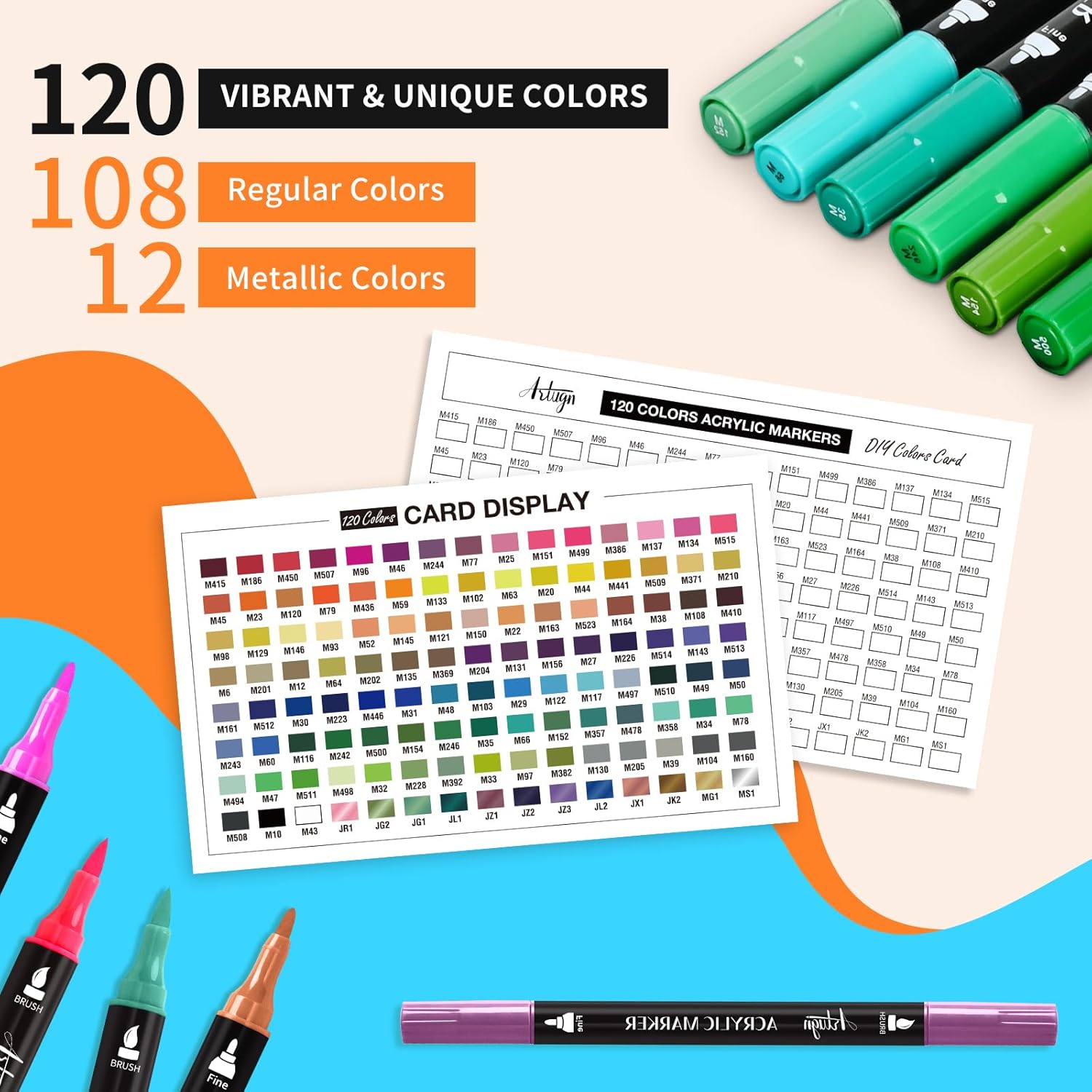 120 Colors Acrylic Paint Pens, Dual Tip Markers With Fine Tip and Brush Tip for Rock Painting, Ceramic, Wood, Plastic, Calligraphy, Scrapbooking, Brush Lettering, Card Making, DIY Crafts