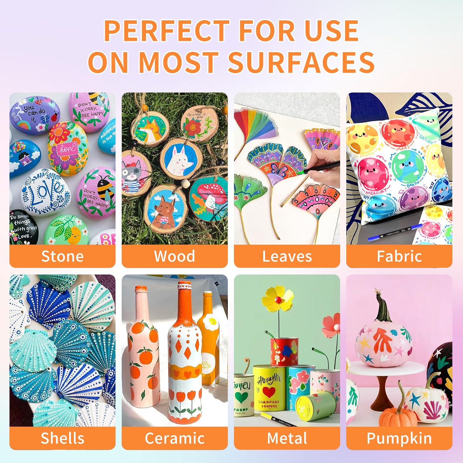 - Multi-Purpose: Enjoy creating art projects on a variety of surfaces, works for rock painting, ceramic, glass, wood, fabric, stone, metal, plastic, canvas, Christmas ornament, Halloween pumpkin painting, calligraphy, scrapbook, bullet journal, brush lettering, Christmas card, birthday present, greeting card, or any DIY crafts projects.