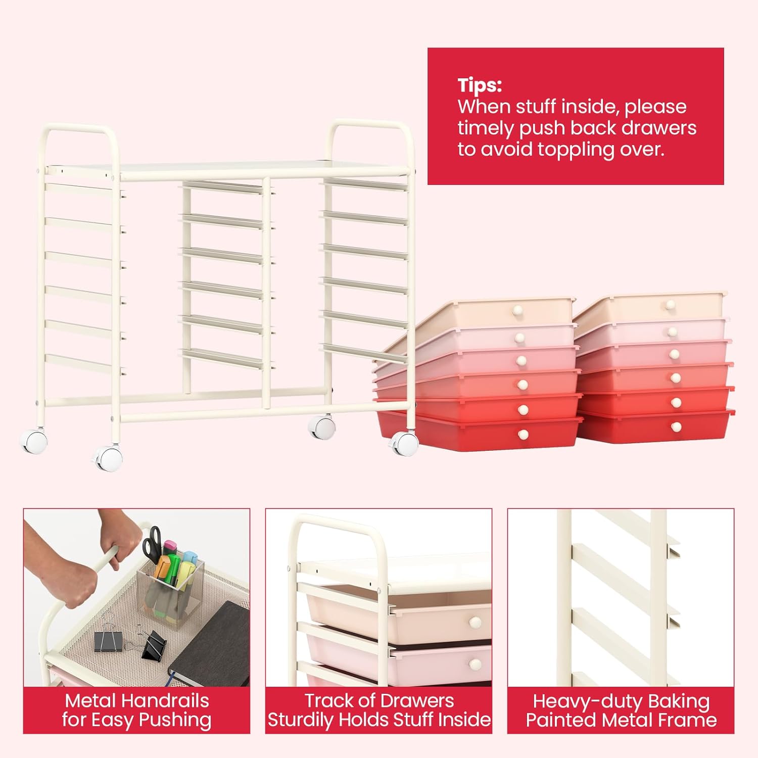 Giantex 12 Drawers Rolling Cart, Mobile Storage Drawer Cart, Classroom Organizer Cart for Office School Supplies Tools Scrapbook Paper Craft Small Printer, Utility Cart on Wheels, Pink Gradient
