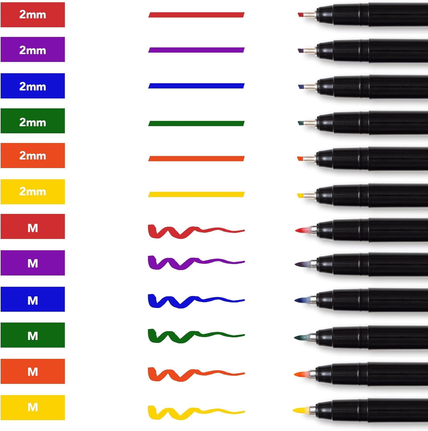 Craft 'n' Beyond Colored Calligraphy Brush Pens Waterproof Pack of 12 Markers for Hand Lettering, Art Drawing, Sketching, Scrapbooking, Journaling - Beginner Kit with Fadeproof Ink