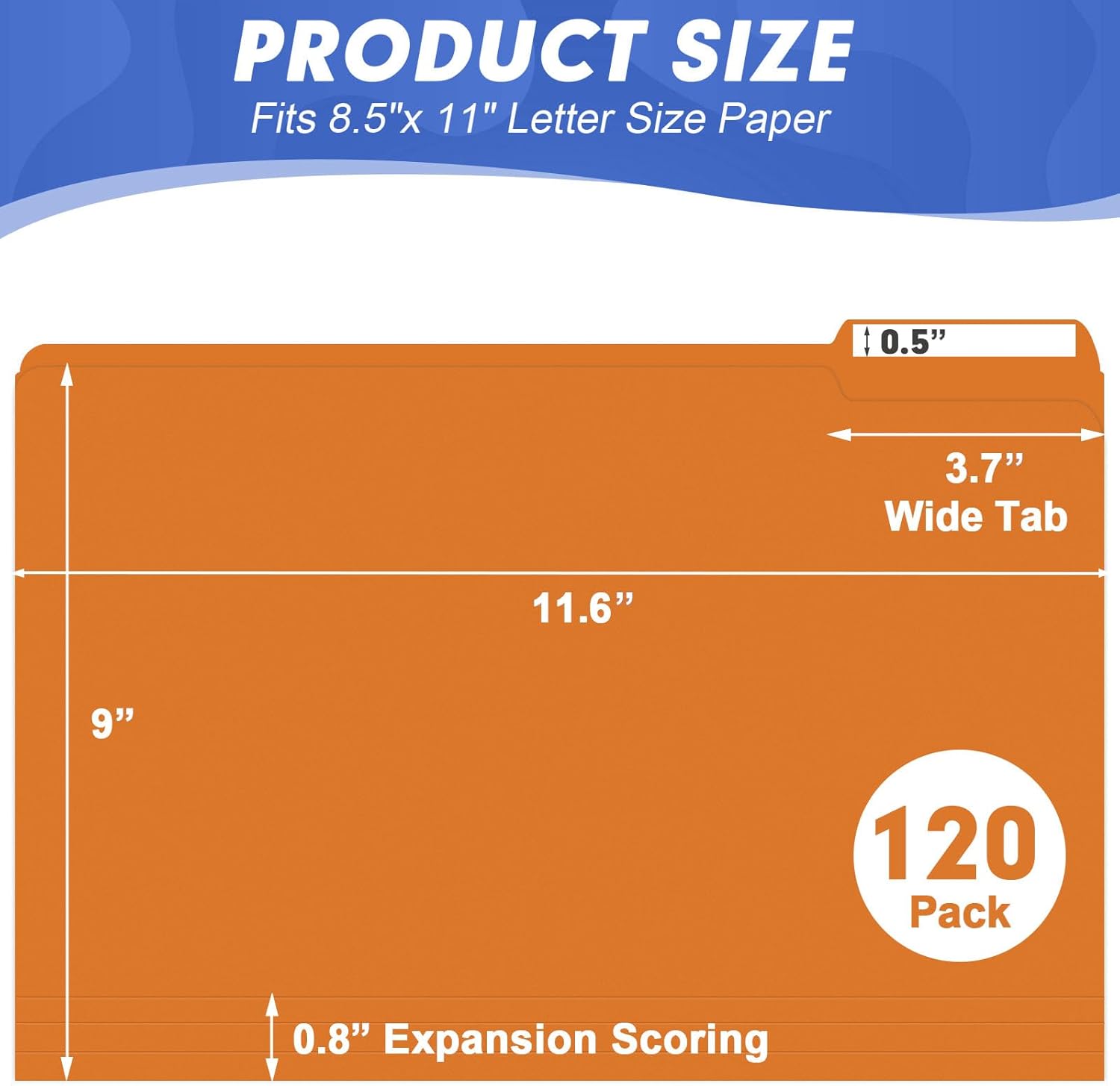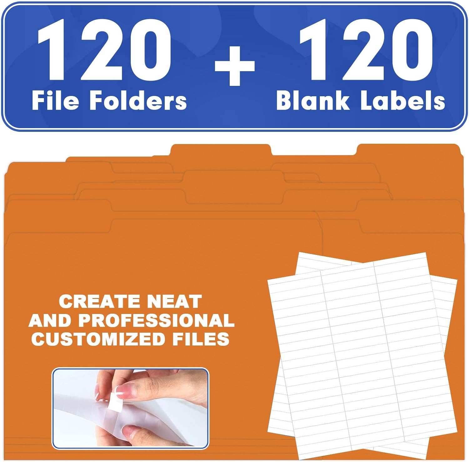 File Folder, HERKKA 120 Pack 1/3 Cut Tab File Folders, File Folders Great for Organizing and Filing, Letter Size, Orange