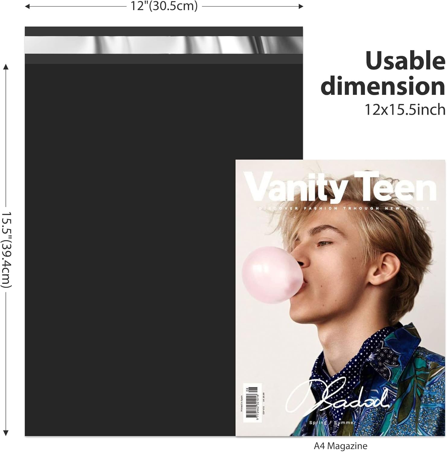 - 12x15.5 Poly Mailers-The Fuxury 12x15.5 plastic shipping bags,pack of 1000pcs,with black color.The bulk packing bags save your time on reordering,buy more save more.