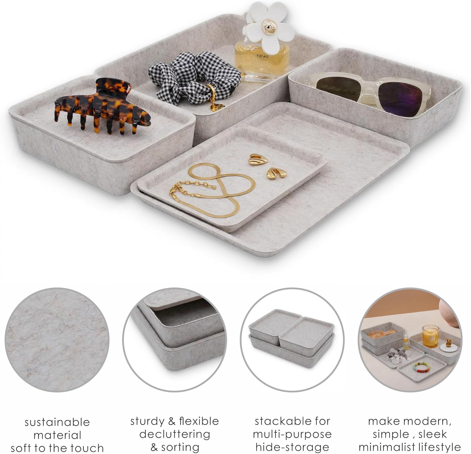 - ăSustainable materială recycled felt with a comfortable touch feeling. no noise like plastic keeps stuff from flying around in the drawer. The soft felt material protects your valuables from scratches while adding a touch of sophistication to any space.