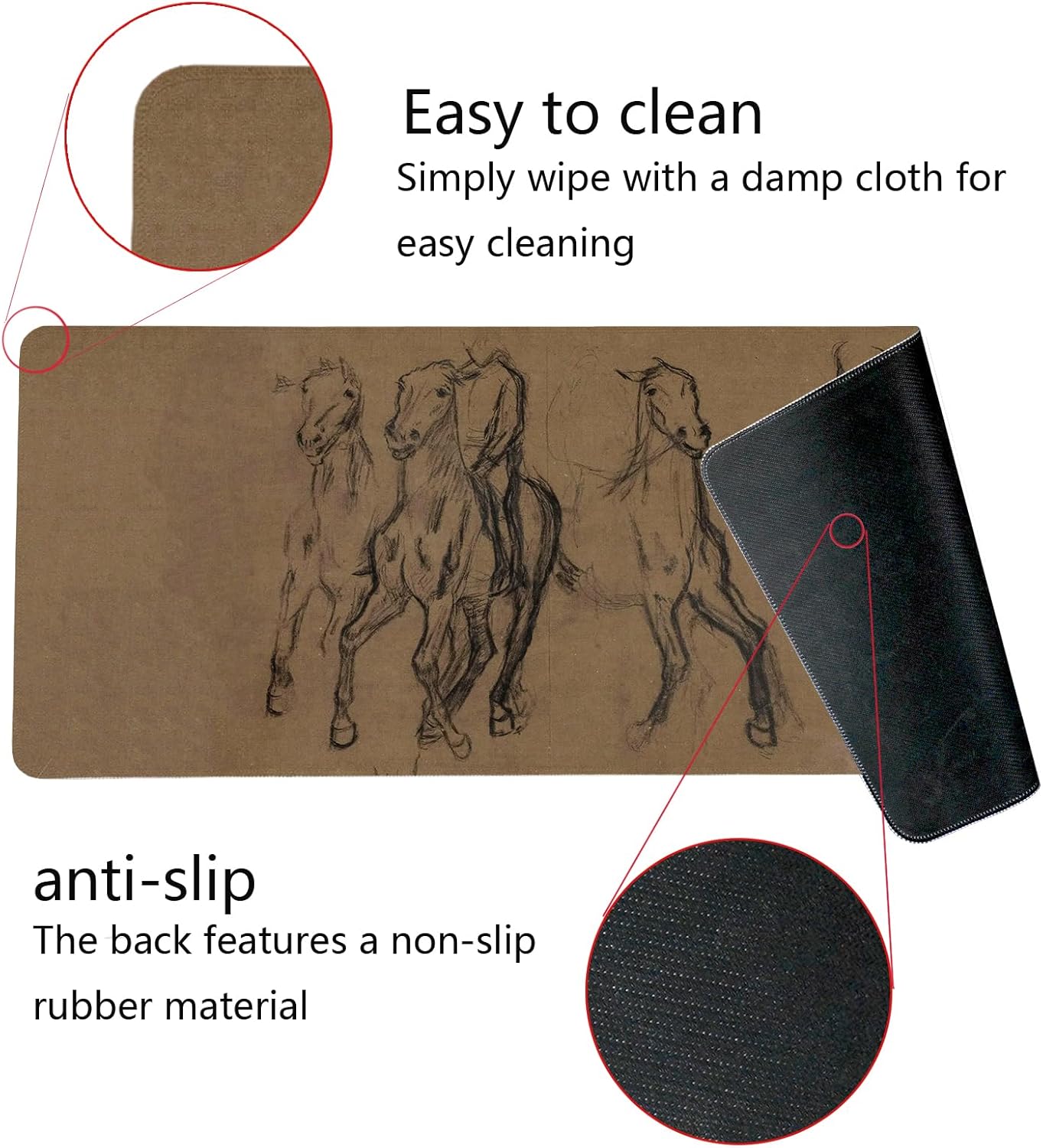 Vintage Western Mouse Pad,Retro Horse Desk Mat for Laptop,XL Large Vintage Mid Century Grey Abstract Art Mouse Pad for Home Decor Office Dorm, Horse Decor for Desktop 31.5x11.8 Inch