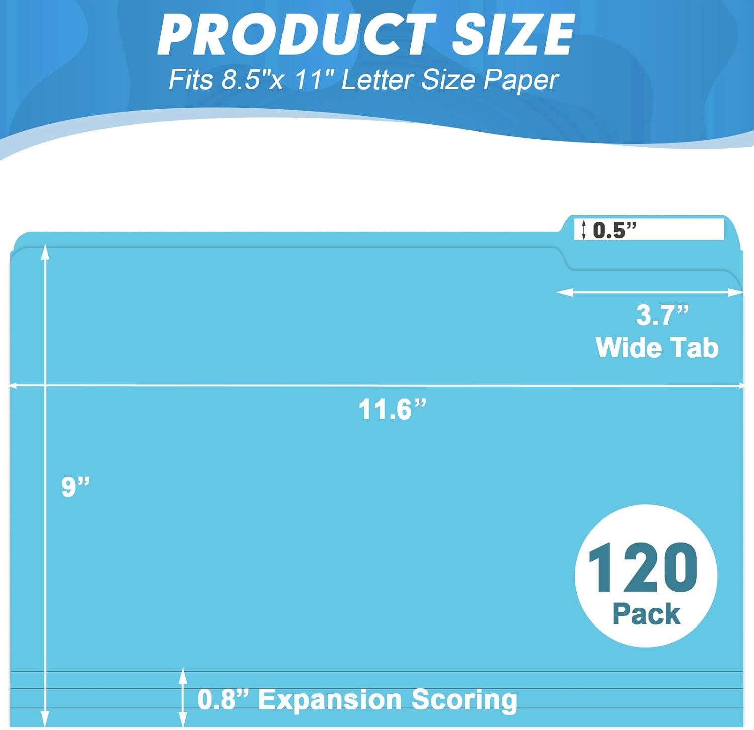 File Folder, HERKKA 120 Pack 1/3 Cut Tab File Folders, Letter Size, Assorted 10 Colors, Colored File Folders Great for Organizing and Filing