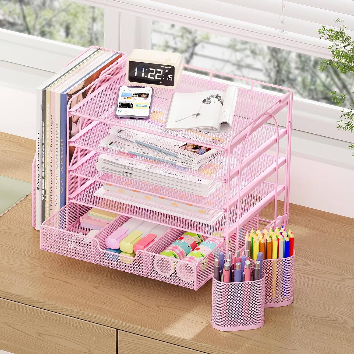 - ăSave Spaceă5-Tier desk organizer provides ample storage space for your office supplies and desk accessories, making it easy to create a neat and organized desktop, increase efficiency and comfort, and enjoy a tidy and organized office experience.