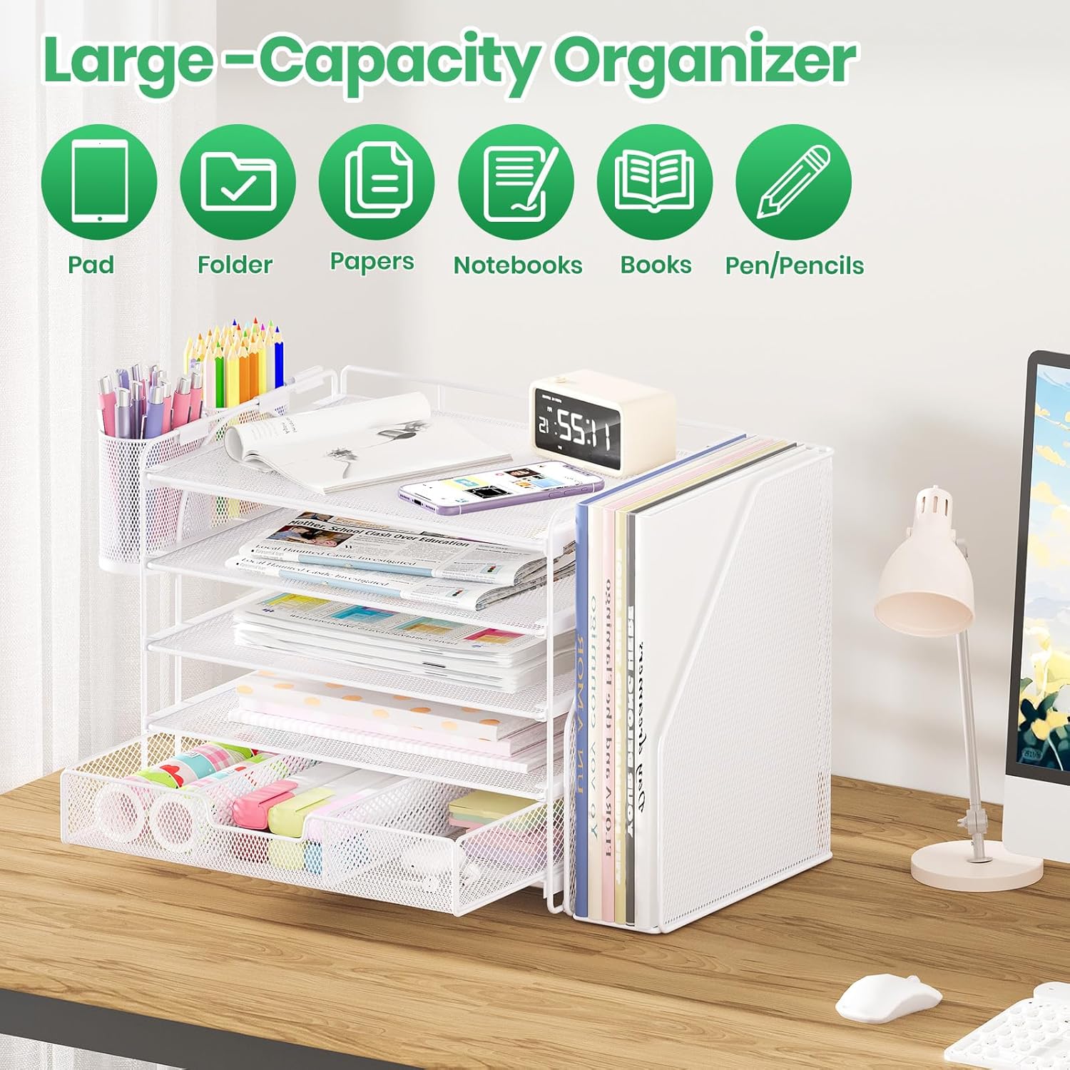 - ăSave Spaceă5-Tier desk organizer provides ample storage space for your office supplies and desk accessories, making it easy to create a neat and organized desktop, increase efficiency and comfort, and enjoy a tidy and organized office experience.