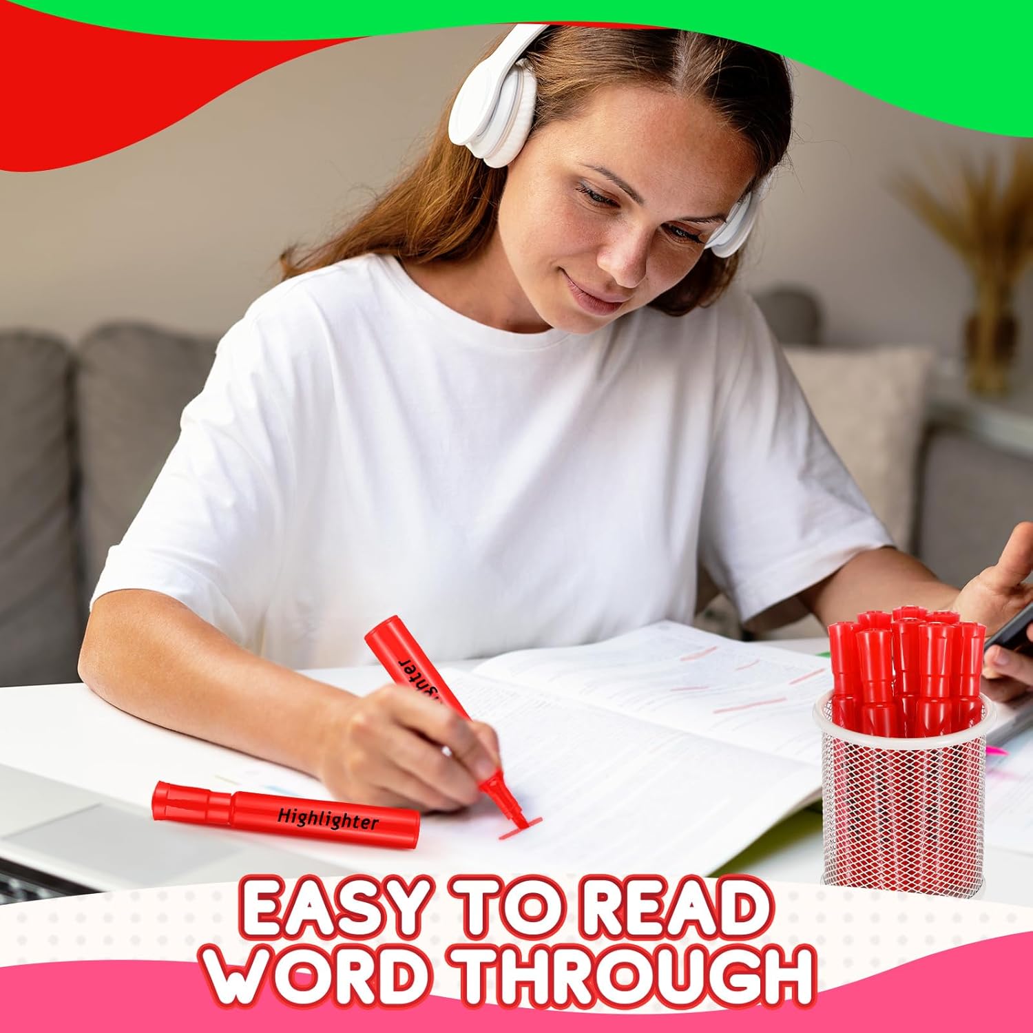Qilery 72 Pack Highlighters Bulk, Tank Style Chisel Tip Highlighters Markers Quick Drying for Kids and Adult Coloring, Classroom Home Office School Supplies (Red)