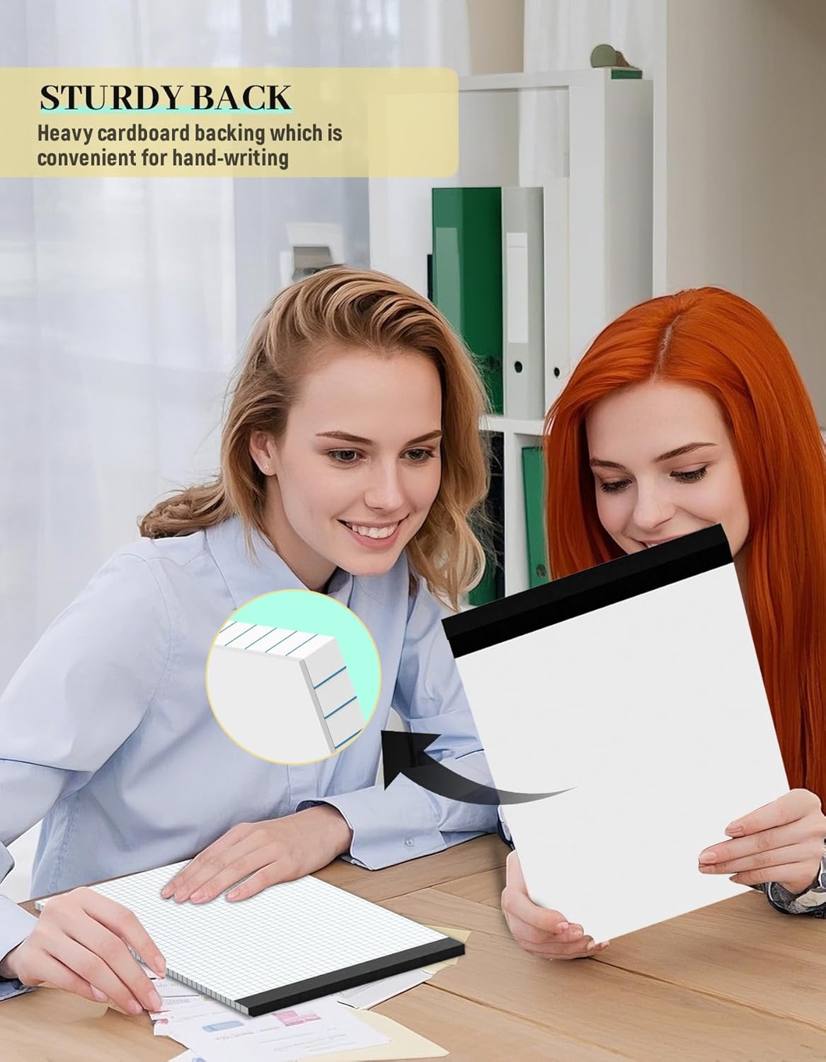 - 【STURDY CARDBOAD BACKER】: These white quadrille paper pad 8.5 x 11 are equipped with thicker, stronger cardboard pad on the backer board, ensure stability and hand-writing on the go, doesn't slip out of hands easily, perfect for holding a pen and writing in various environment. Graph paper sheets are secured by the black binding. The writing tablets 8.5 x 11 can be torn off a page quickly and cleanly without leaving any crumbs.