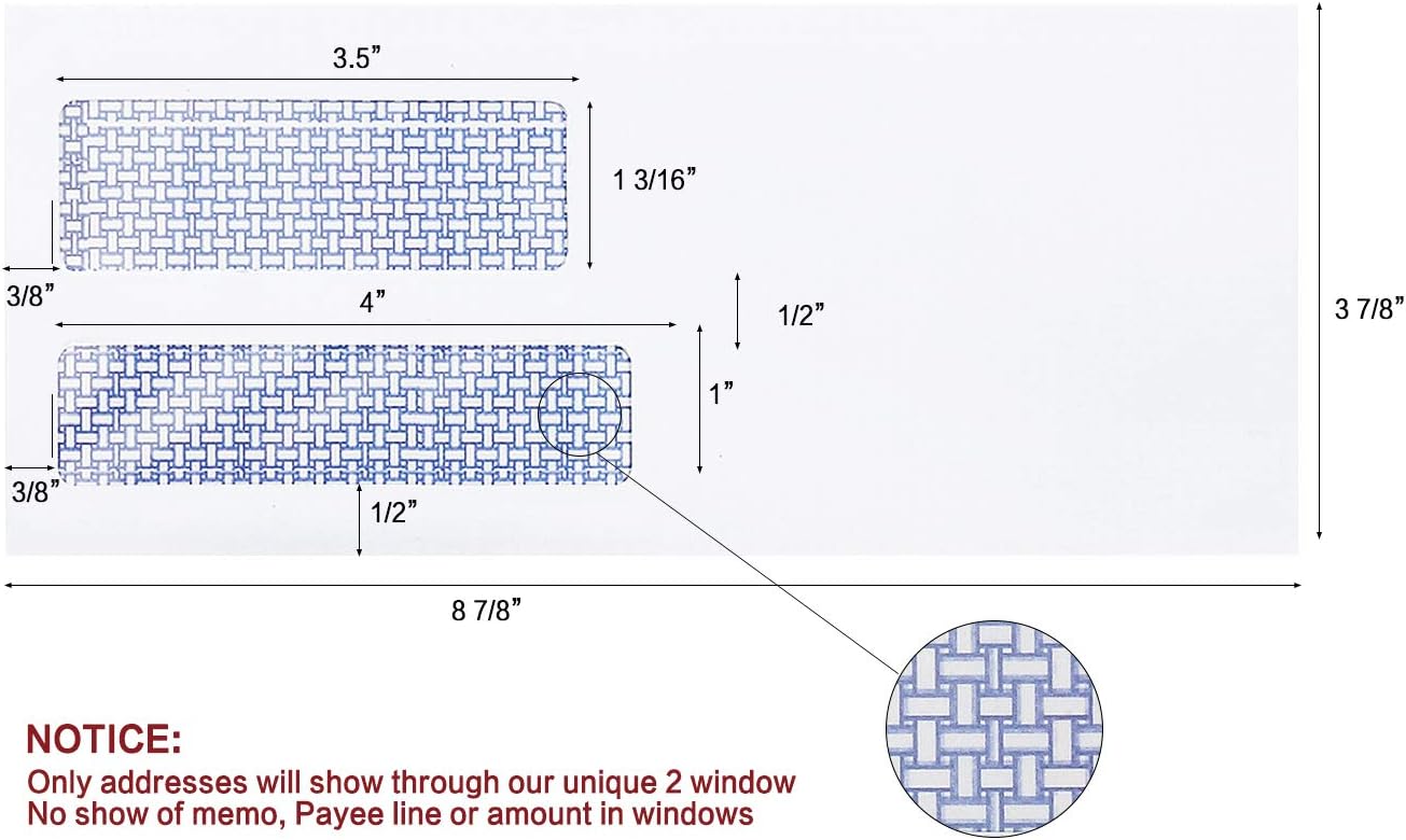 - DOUBLE WINDOW DESIGN: Only sender and return address will show on your QuickBooks invoices and monthly bills through our unique 2 window . No show of memo, Payee line or amount in windows. Suitable for QuickBooks Invoices and business billing statements.