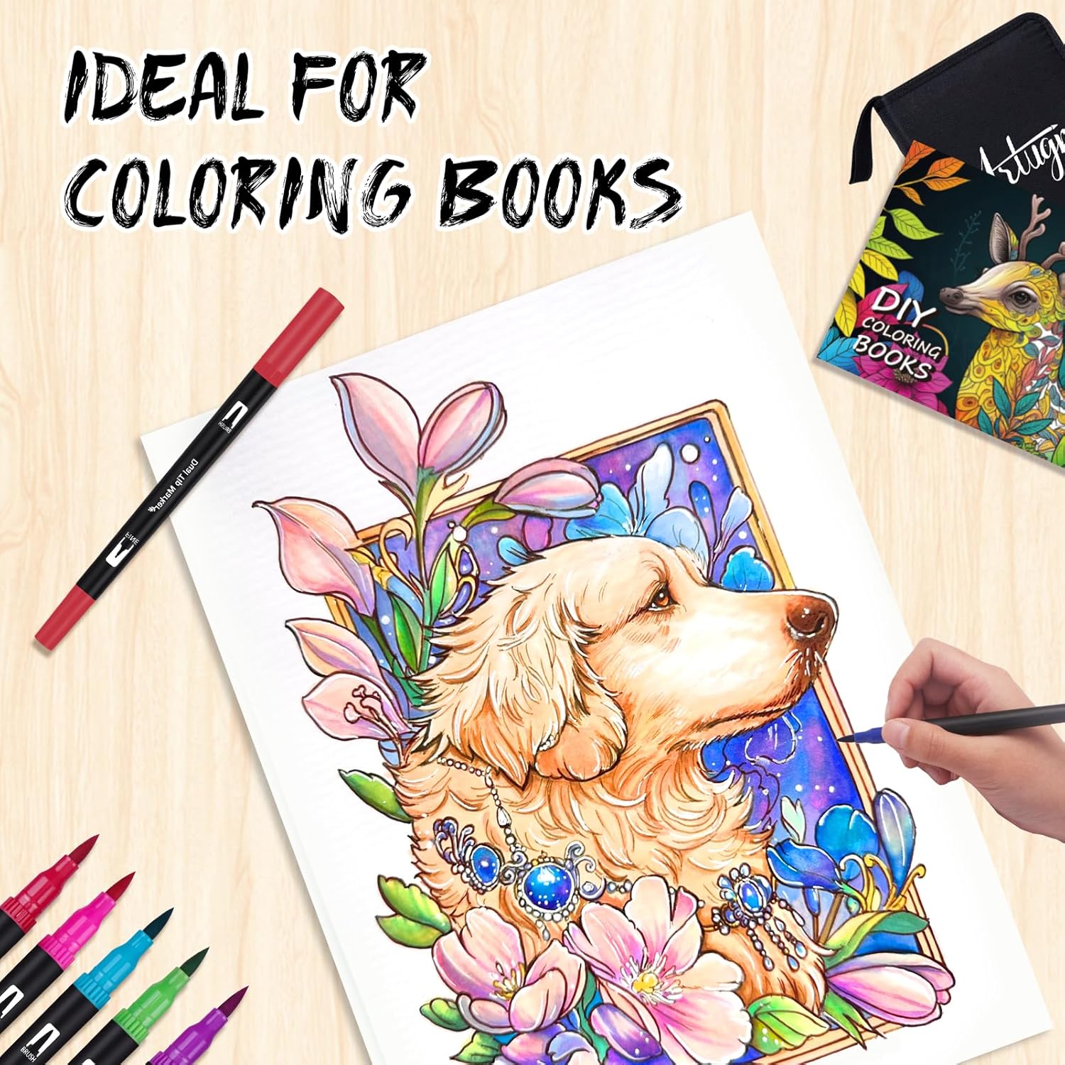 - PORTABLE DESIGN: Our brush pens are packed in a PORTABLE STORAGE CASE which have pen slots to organize all your colors. Those double-end pens are use in school, travel or in the home and office.The kits includes 1 x Portable Case, 72 x Coloring Markers, 1 x DIY Coloring Book, 3 x Bonus Brush Tips & 3 x Bonus Fineliner Tips.