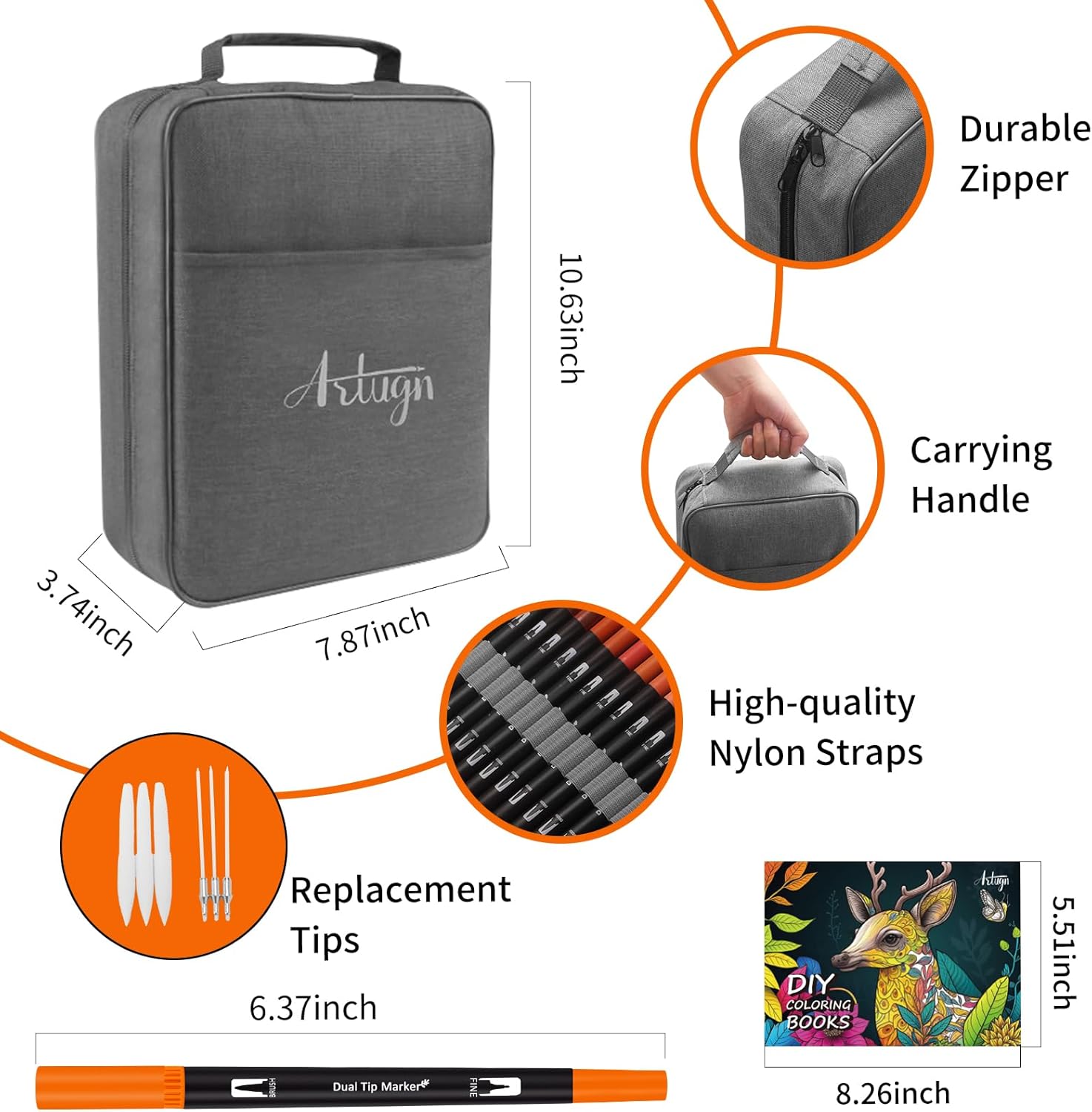 - DUAL-TIP DESIGN FOR VERSATILITY: The Artugn art markers for adults feature durable dual tips with smooth ink flow that effortlessly fit any writing surface. 1-4mm brush tip works well for shading, coloring and blending, quickly color in large areas art project, Easily layer and mix different colors; 0.4mm fine point tip is great for sketch outlining & details, works well for intricate coloring books, writing, doodling. Double Tips, Endless Creativity!