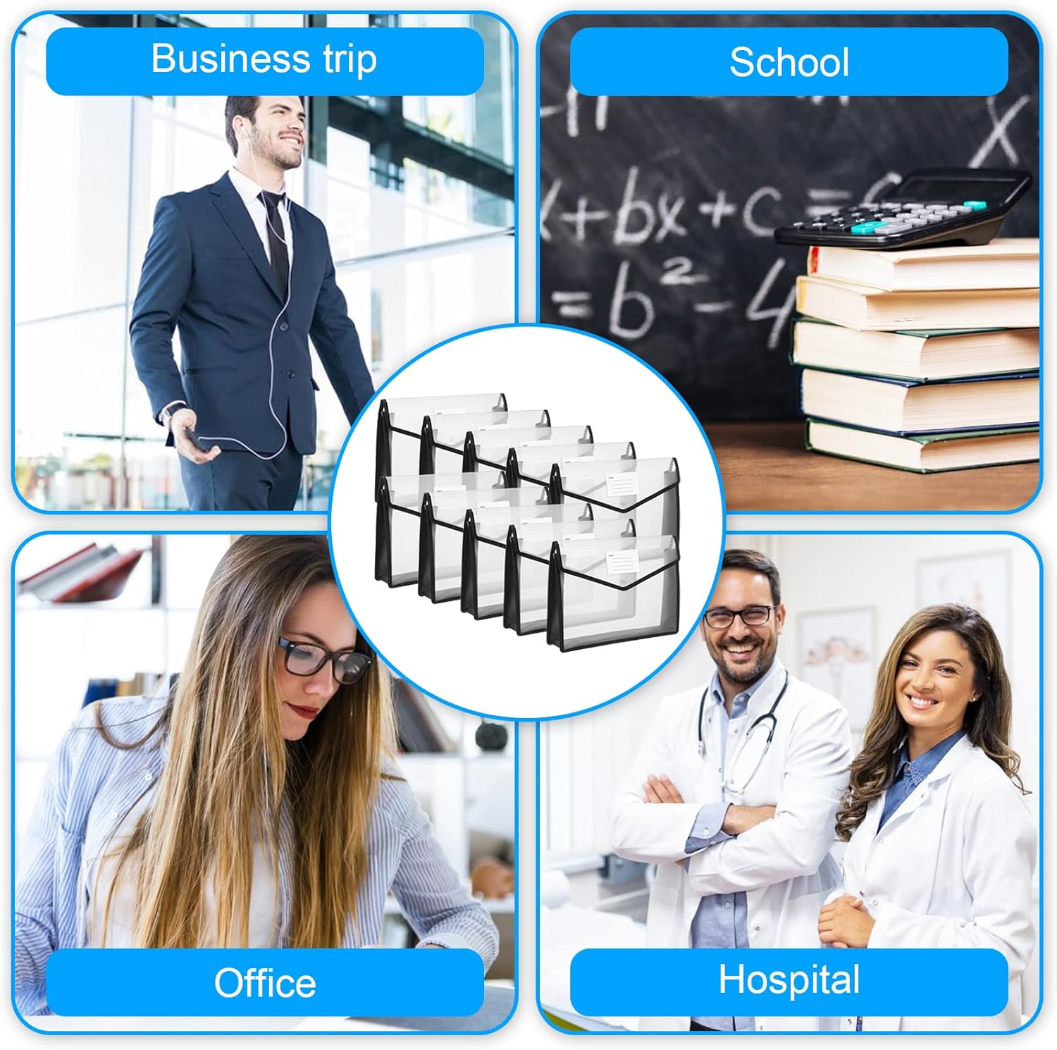 10 Pack Plastic File Folders Portable Expanding File Folder Organizer Documents Envelopes with Snap Closure, A4 Size Waterproof Transparent Pouch with Label for Business Office School