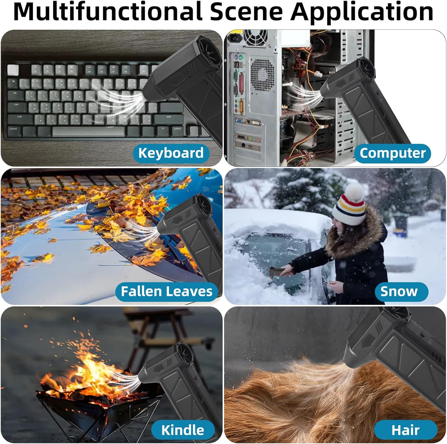 - ăSuction and Blowing Integrated DesignăCompressed Air Duster can quickly start a fire, especially when grilling outdoors. It meets the diverse needs of DIY dust removal, outdoor camping, workshop debris cleaning, etc., and doubles the efficiency.