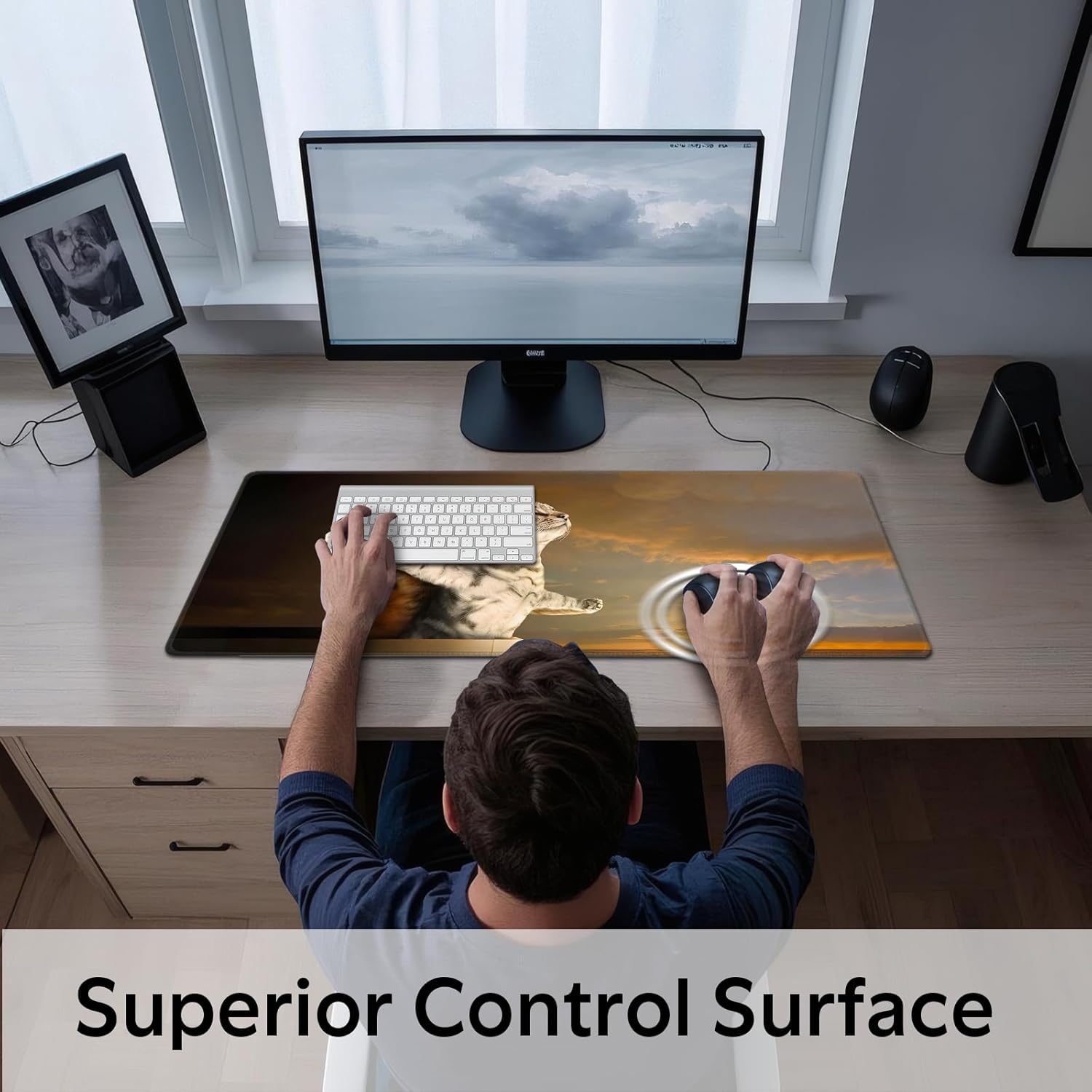 - Large Size:Funny Cat mouse pad measures 31.5 x 11.8 inches, providing ample space for your mouse, gaming keyboard, and other desk items while protecting your desk from scratches and stains.