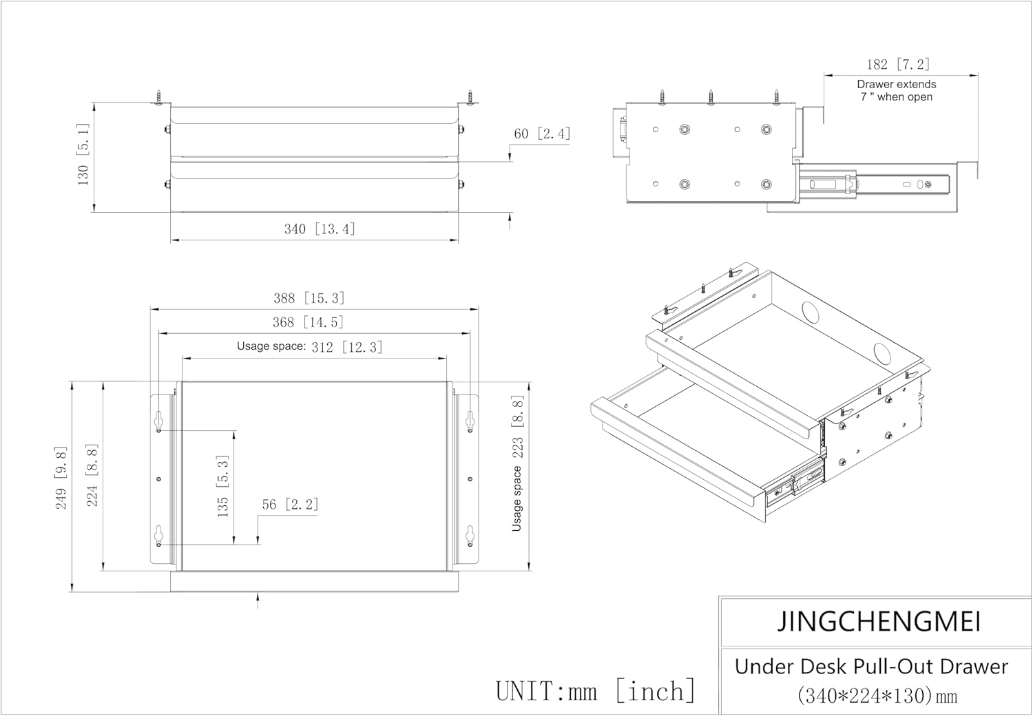 - Product Size: Width15.3" x Depth 9.8" x Height 5.1"; Each Layer Usage Space: Wide 12.3" x Deep 8.8" x High 2.28", The Drawer can Extend 7.2" When Sliding Out (Not including the handle).