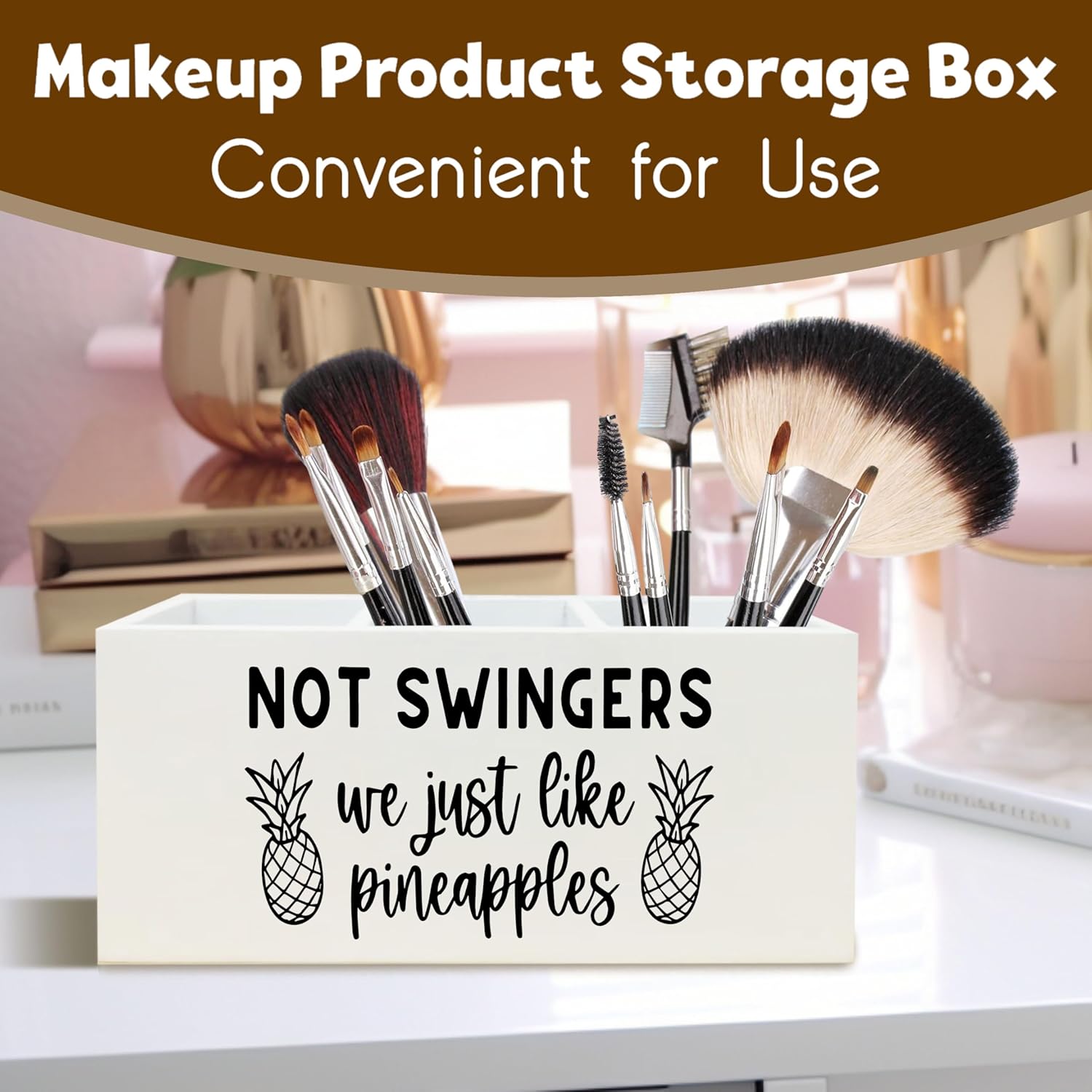 Funny Office Desk Pen Holder, Not Swingers We Just like Pineapples Decor for Home Humor Gifts, Funny Gifts for Women Men Wooden Pencil Holder Organizer for Desk Accessories