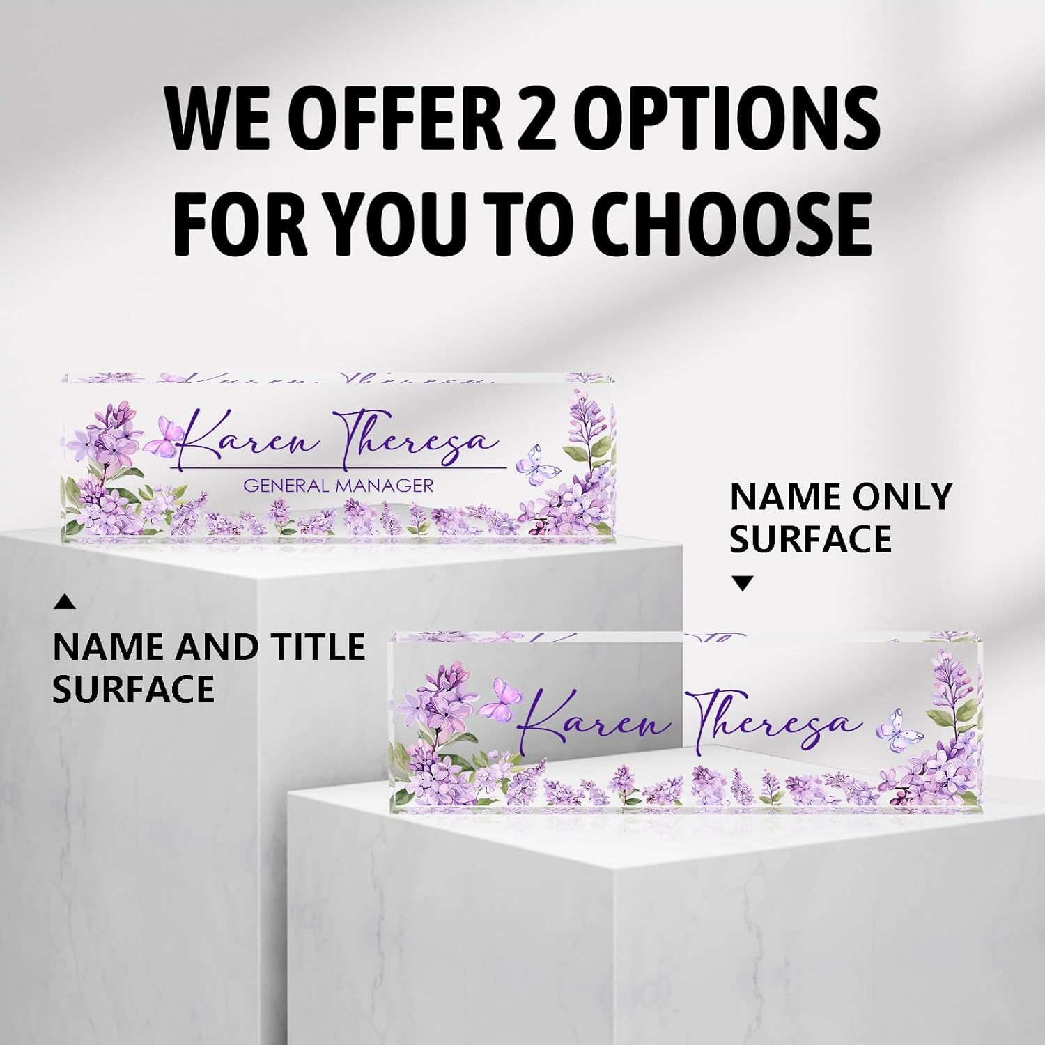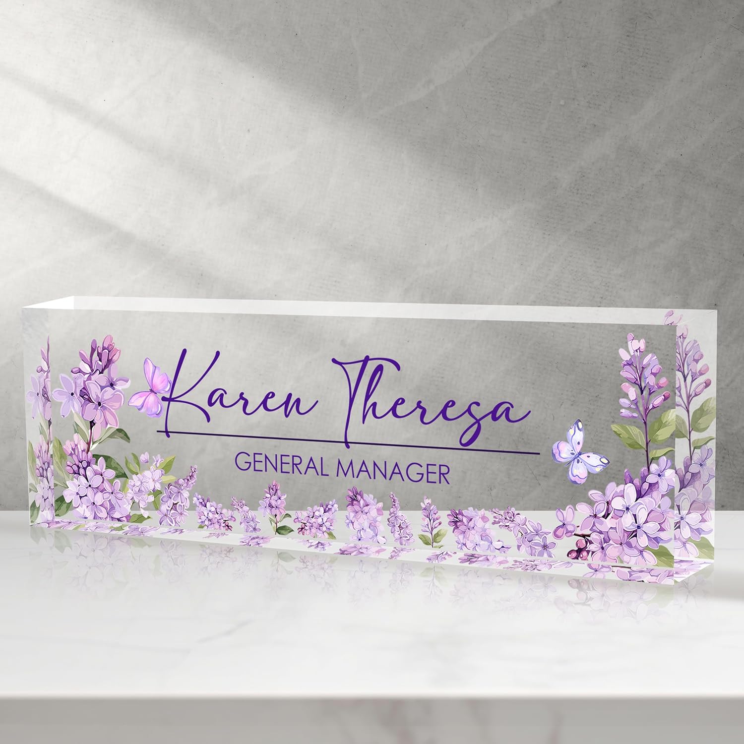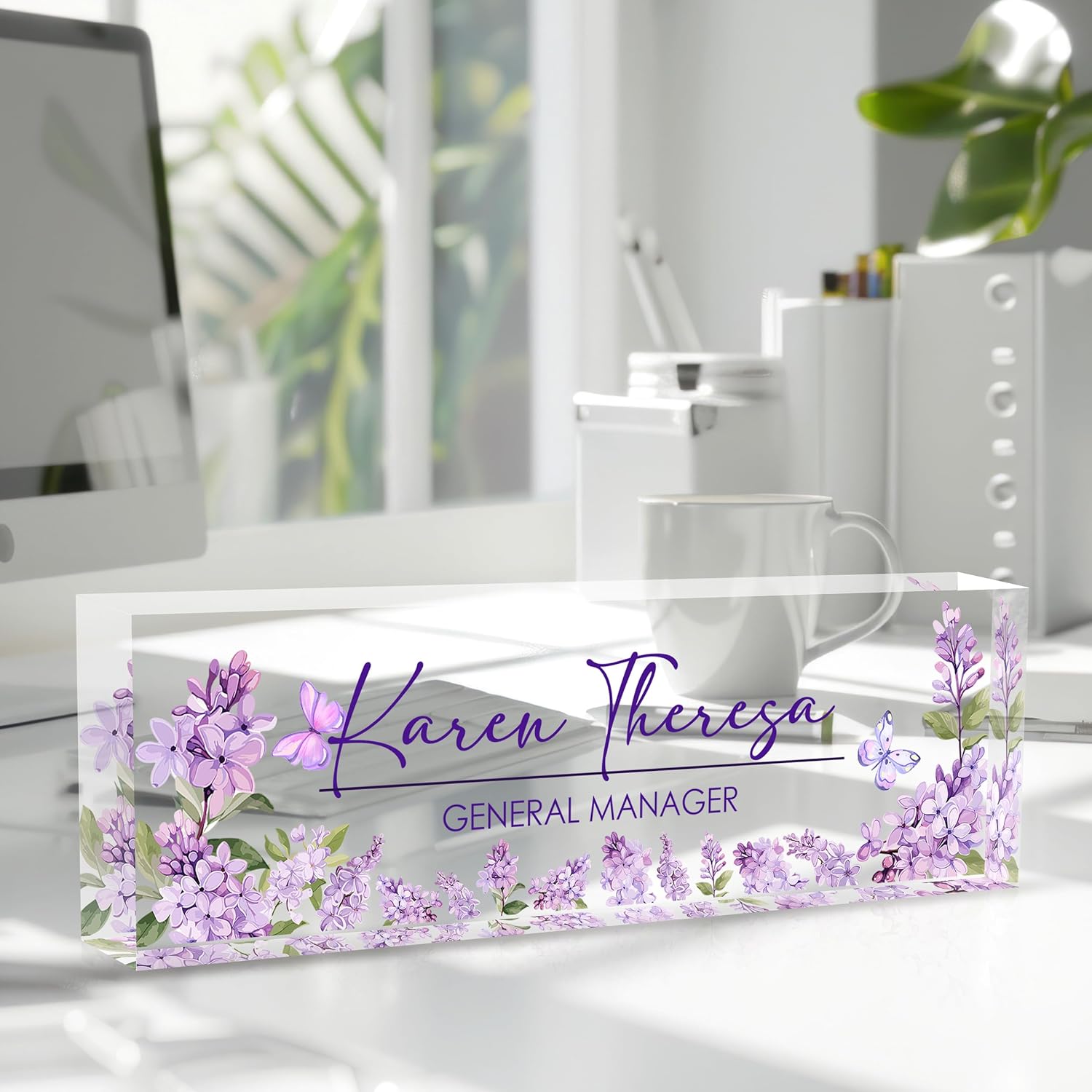 Custom Office Name Plate for Desk, Desk Name Plate Personalized, Personalized Gifts for Women, Appreciation Gifts for Employee Coworkers Boss Teacher, Office Accessories (Purple lilac flower)