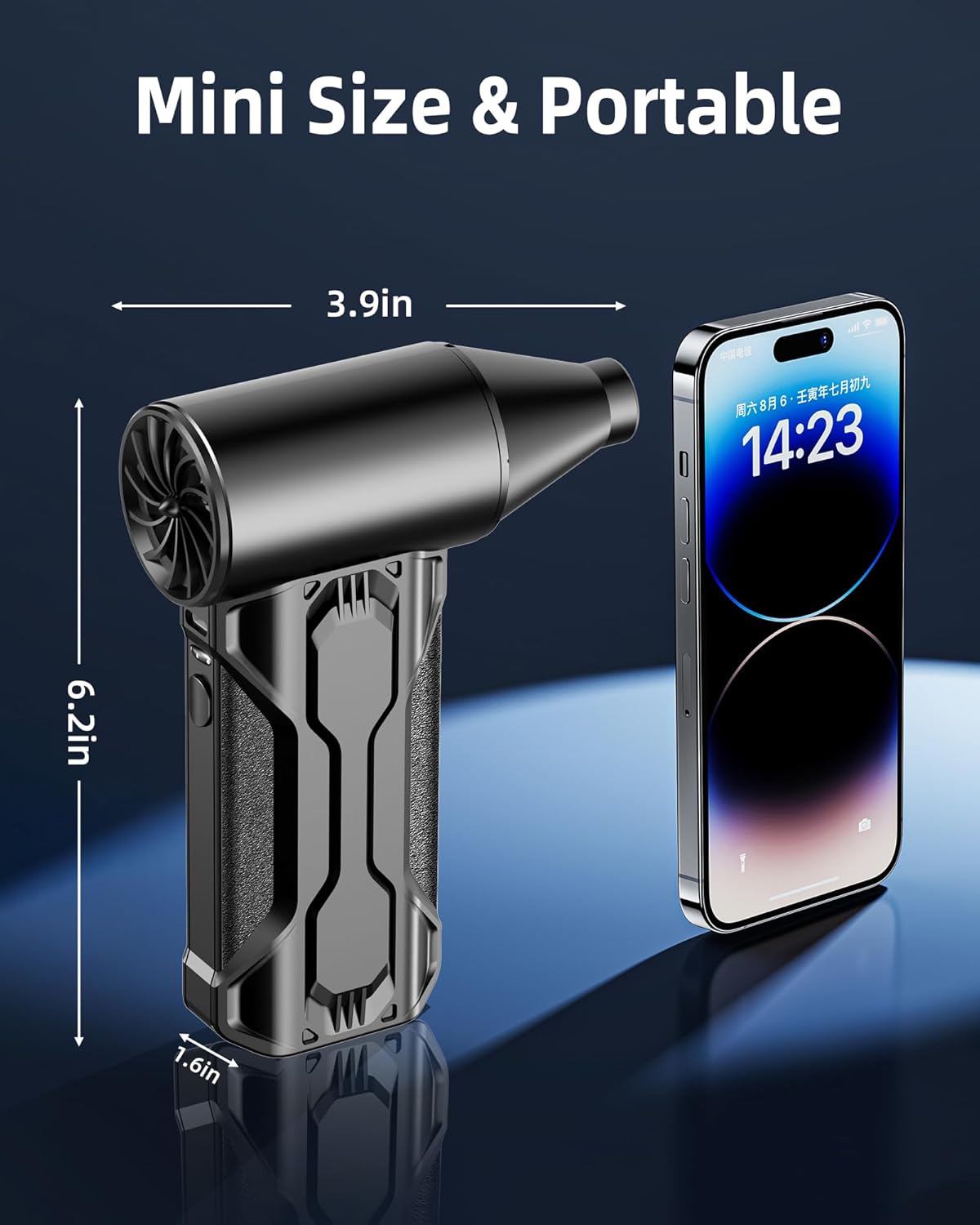 - [Premium Aluminum + ABS Construction]: Built to last, the air duster electric features scratch-resistant, sleek aluminum housing with industrial-grade ABS. Its modern aesthetic doubles as a stylish car accessory, blending durability with sophistication.