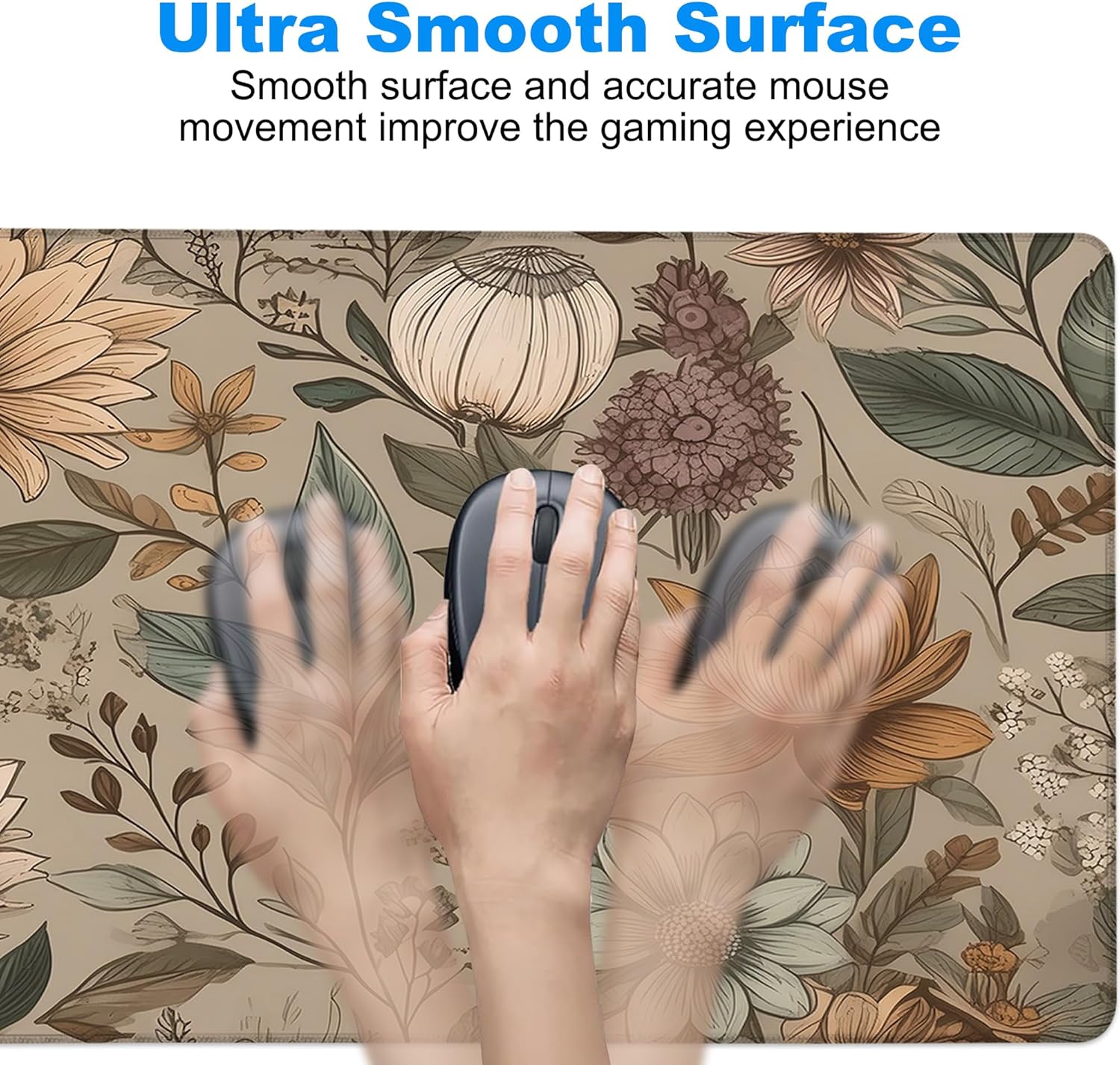 Desk Mat, Vintage Botanical Flowers Leaves Large Gaming Mouse Pad with Non-Slip Base Stitched Edges,Desk pad for Keyboard and Mouse Home Office 35.4"x15.7"