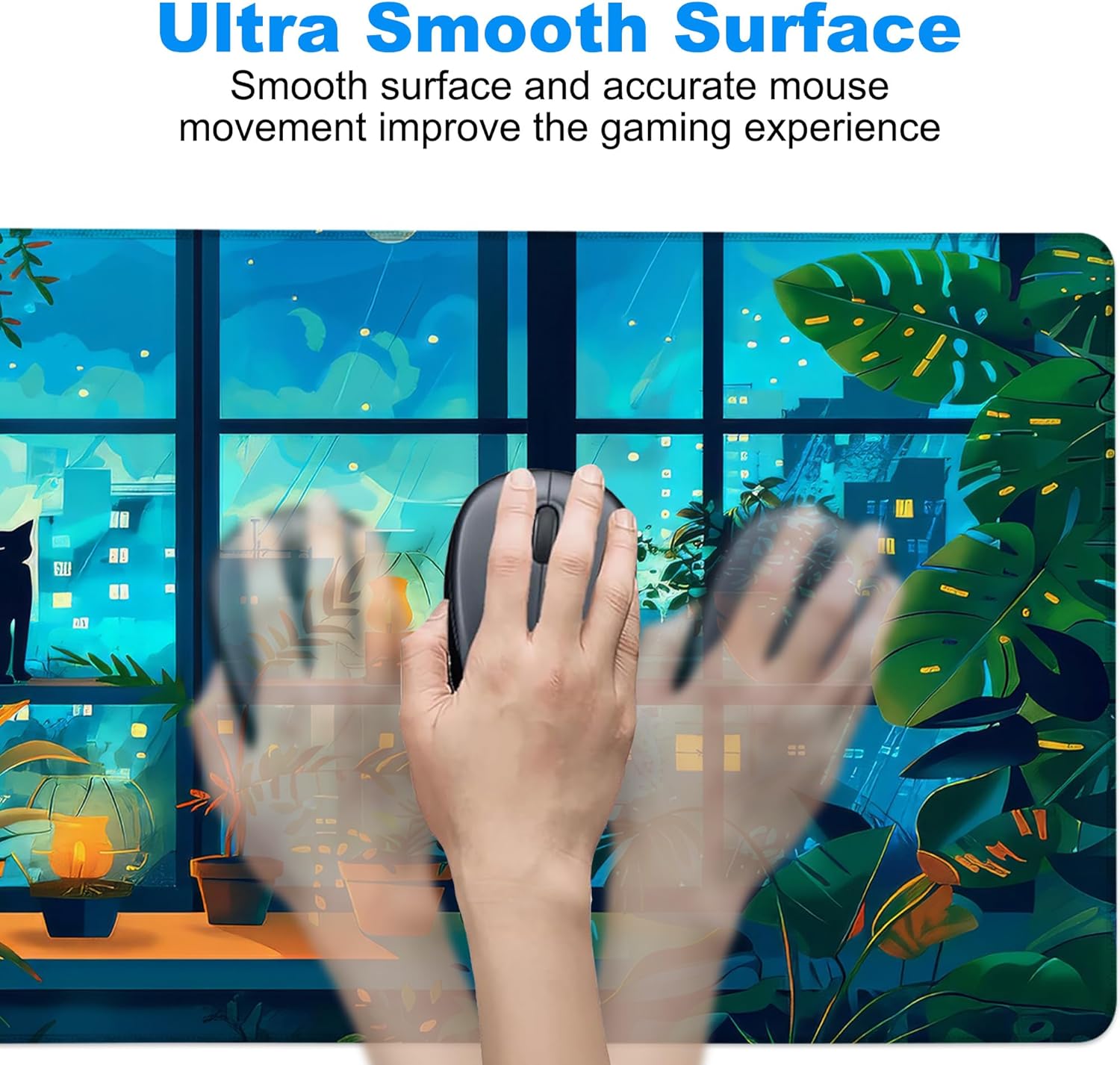 - Smooth Surface: The surface of this large mouse mat is made of high-quality polyester cloth, which is soft and smooth, allowing you to move the mouse easily and maximize your work/gaming experience