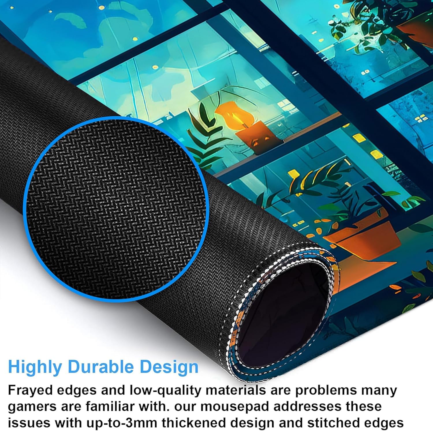 - Highly Durable Design:This Extended mousepad has a refined edge that effectively prevents wear and tear.Stitching along the edge of the surface ensures it will never wear or peel
