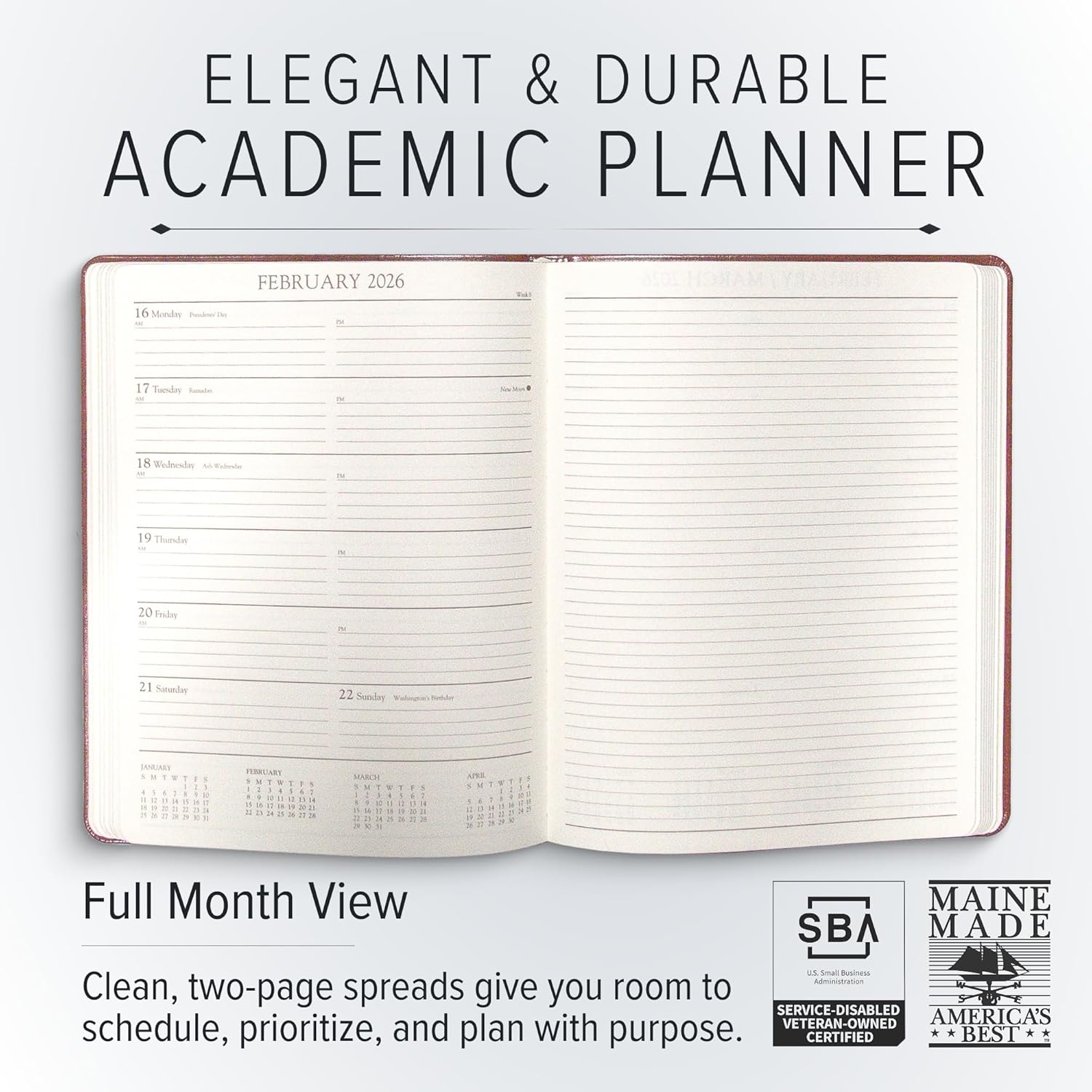 - ๐ ๐จ๐ป๐ถ๐พ๐๐ฒ ๐พ๐๐ฎ๐น๐ถ๐๐ ๐๐ผ๐ ๐ฐ๐ฎ๐ป ๐ณ๐ฒ๐ฒ๐น: Unlike generic planners, our academic planners are handcrafted in Bar Harbor, Maine, using the finest bonded leather for weekly planners to last a lifetime. Gorgeous with 208 pages to make sure you have plenty of space for planning. Also giving you an expensive look that will be the envy of everyone. With gold-gilded edges and high-quality materials, our planners stand out in durability and elegance