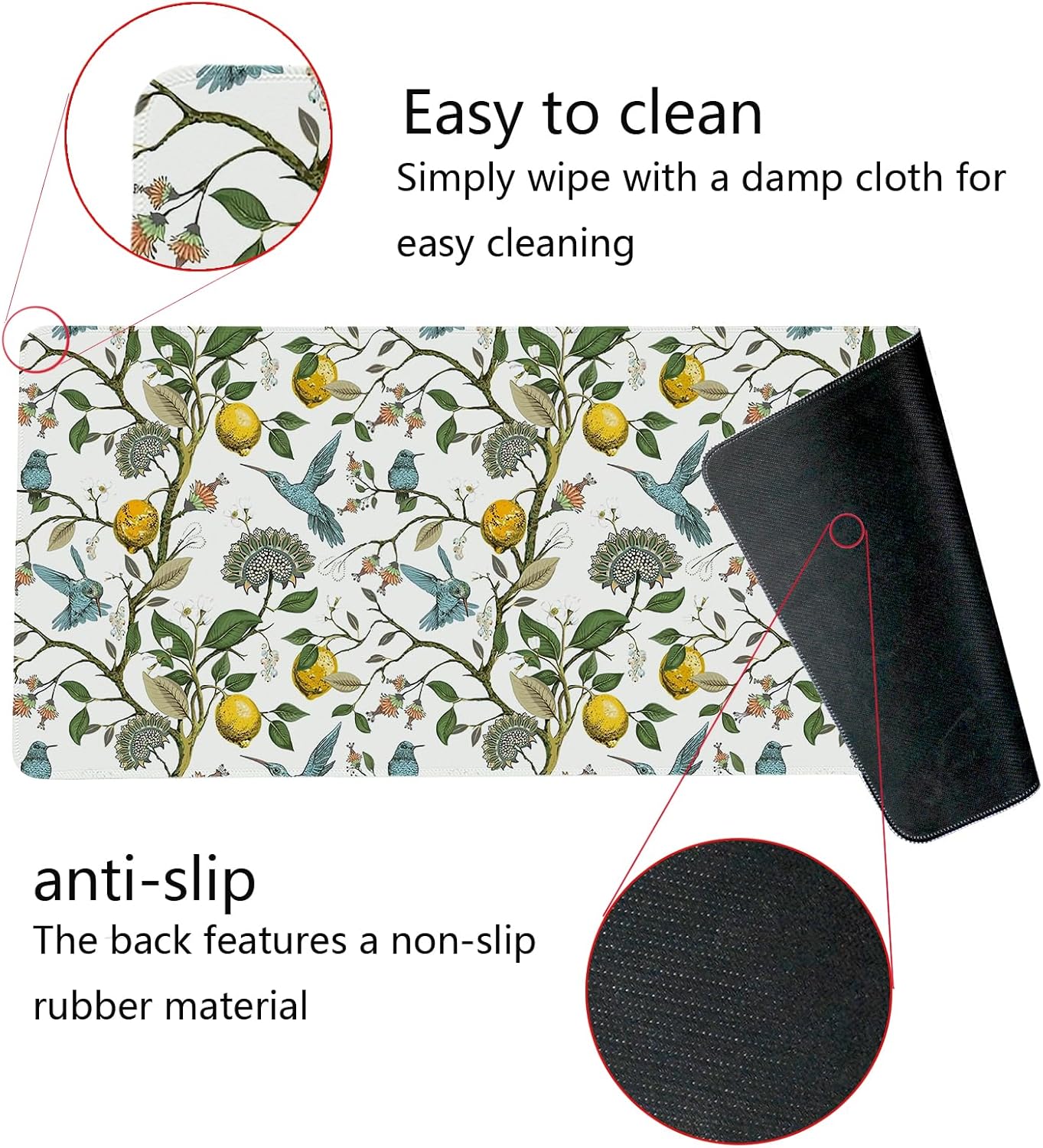 Lemon Mouse Pad,Green and Yellow Italian Lemon Desk Mat,Vintage Cottagecore Floral Desk Mat,Girly Summer Mouse Pads for Dorm Home Office Desktop Decor,31.5x11.8 Inch