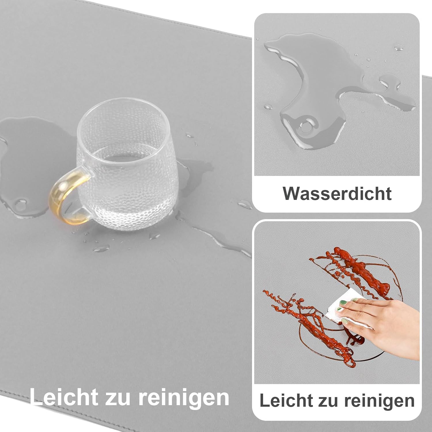 DAWNTREES Desk Mat Protector,PU Leather Laptop Pad,Non Slip, 23.6" x 13.8" Large Mouse Pad and Keyboard Mat, Waterproof Writing Pad for Office and Home (Light Gray)