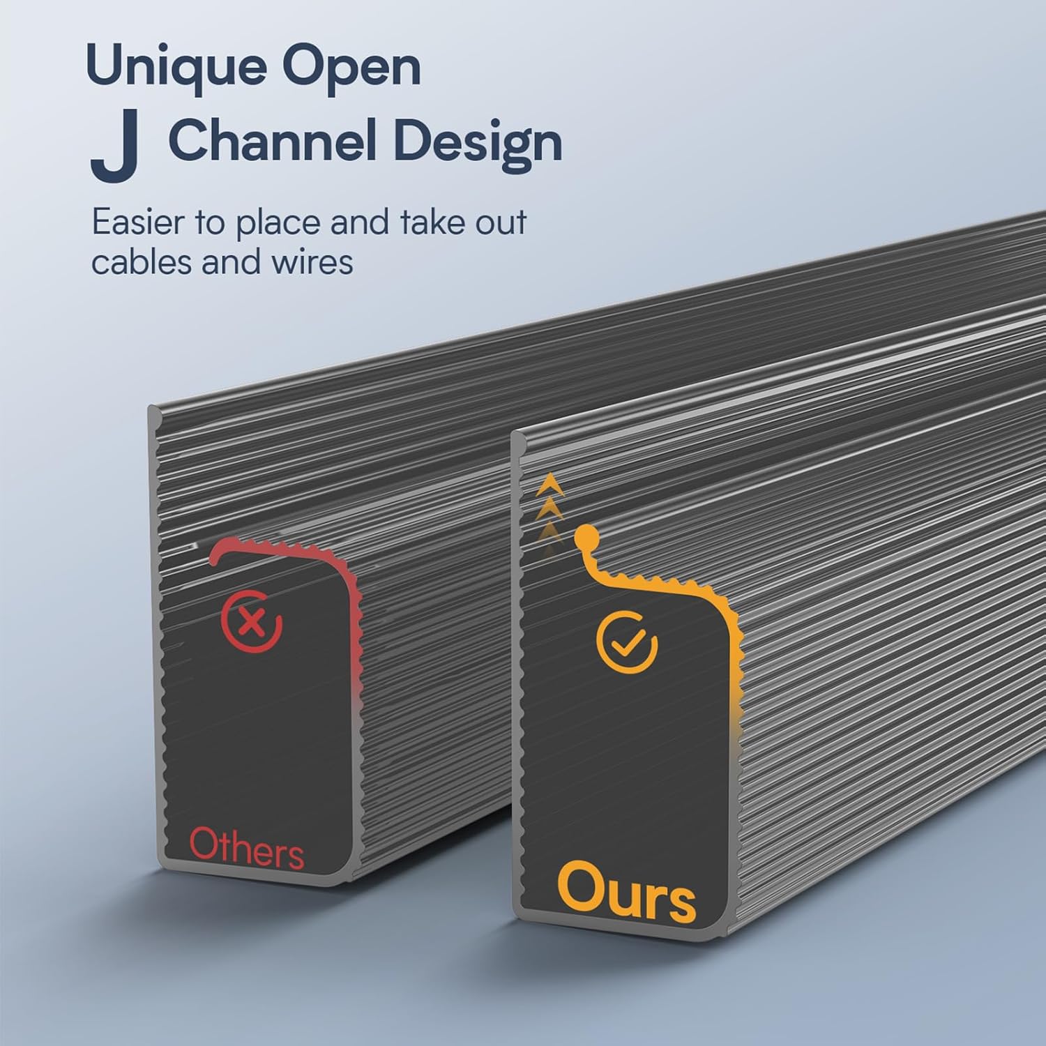 - Traceless Installation Experience: Our J channel wire organizers for cords features a high strength self adhesive backing that simplifies the installation process, eliminating the need for drilling or additional tools, the easy to remove nature of our desk cable management kit allows you to adjust the position of cord organizer for desk or clean the area without leaving any residue