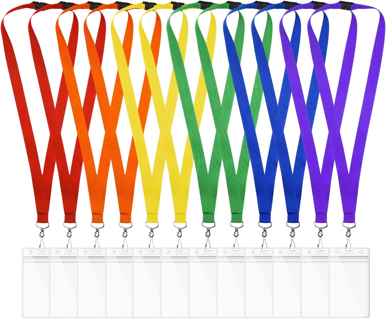 12 Pack Rainbow Breakaway Lanyards with Waterproof Badge Holders, Metal Hook, Polyester Neck Straps for ID Cards, Events, Office, and Schools