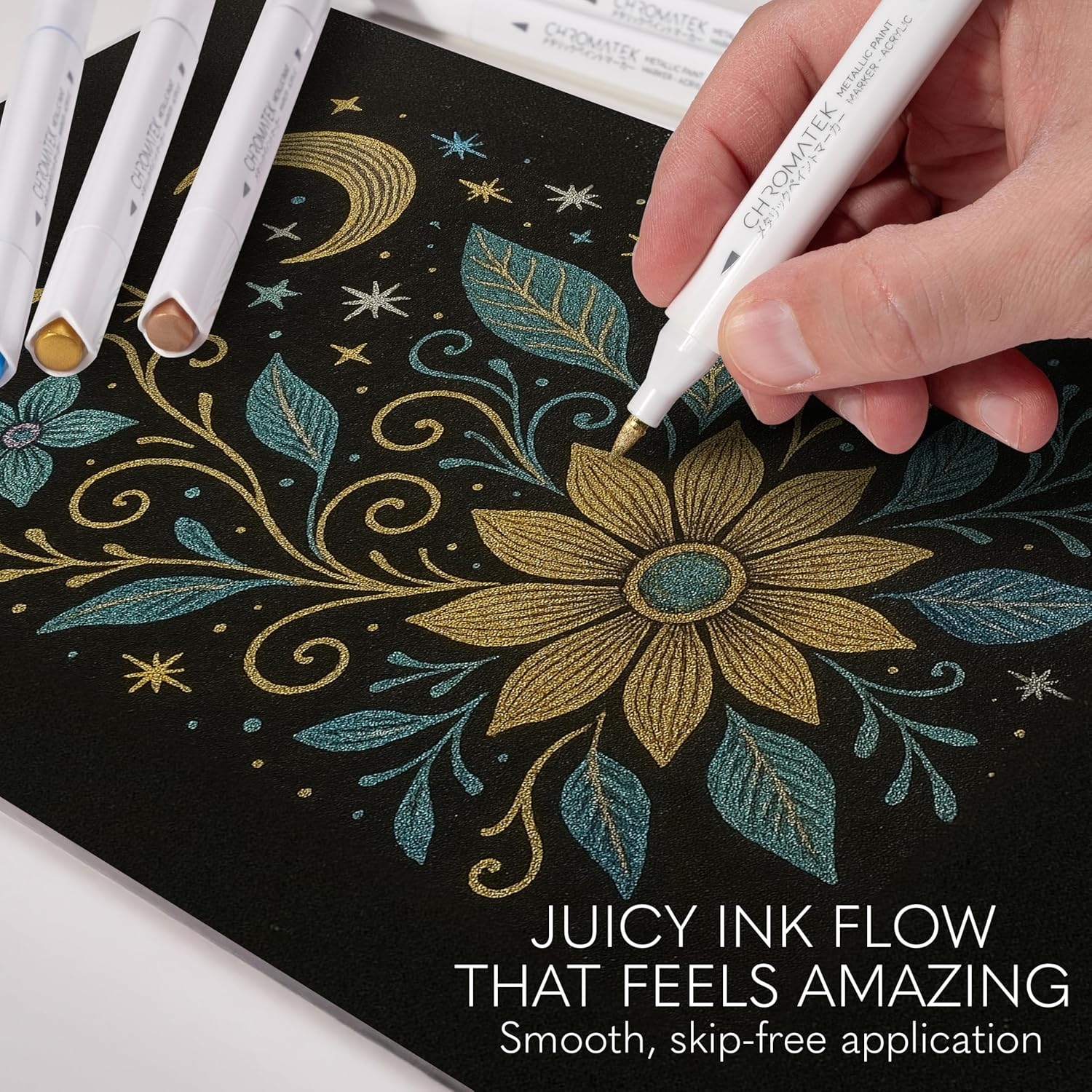 - Smooth, Skip-Free Performance: Enjoy smooth, skip-free ink flow with every mark. Chromatek’s premium ink formula lays down evenly on most surfaces without blotting or streaking. Whether you're coloring intricate patterns or freehand designing, the pigment-rich consistency enhances control and coverage. Get crisp edges and vibrant saturation for a polished, gallery-worthy finish in every project. Great for artists, crafters, students, and hobbyists alike.