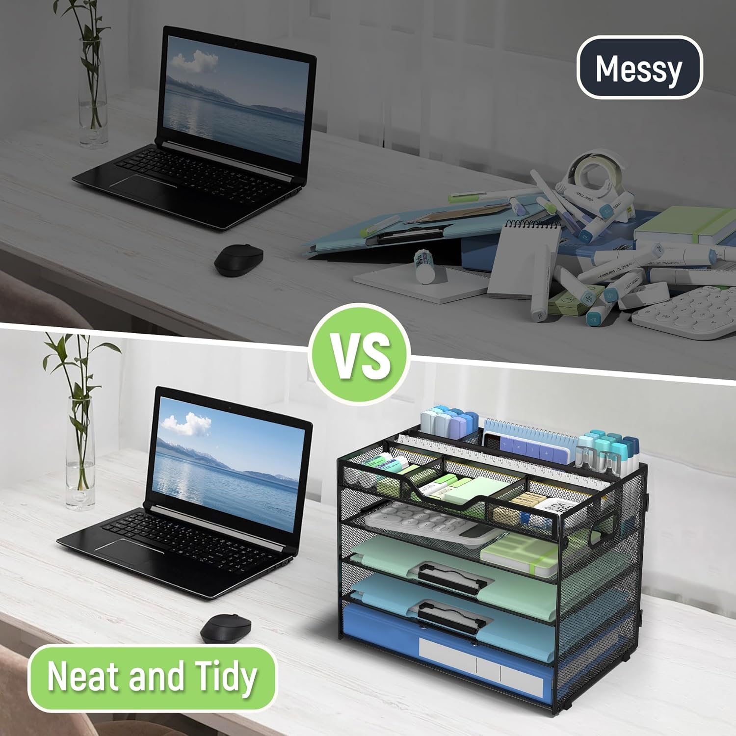 - Low-Maintenance, Easy to Clean-The smooth powder-coated surface of this professional office desk organizer resists dust and stains—simply wipe with a damp cloth for spotless upkeep. Ideal for busy offices, classrooms, or home workspaces where desk organization and hygiene matter most. The perfect paper organizer for desk among your essential office supplies