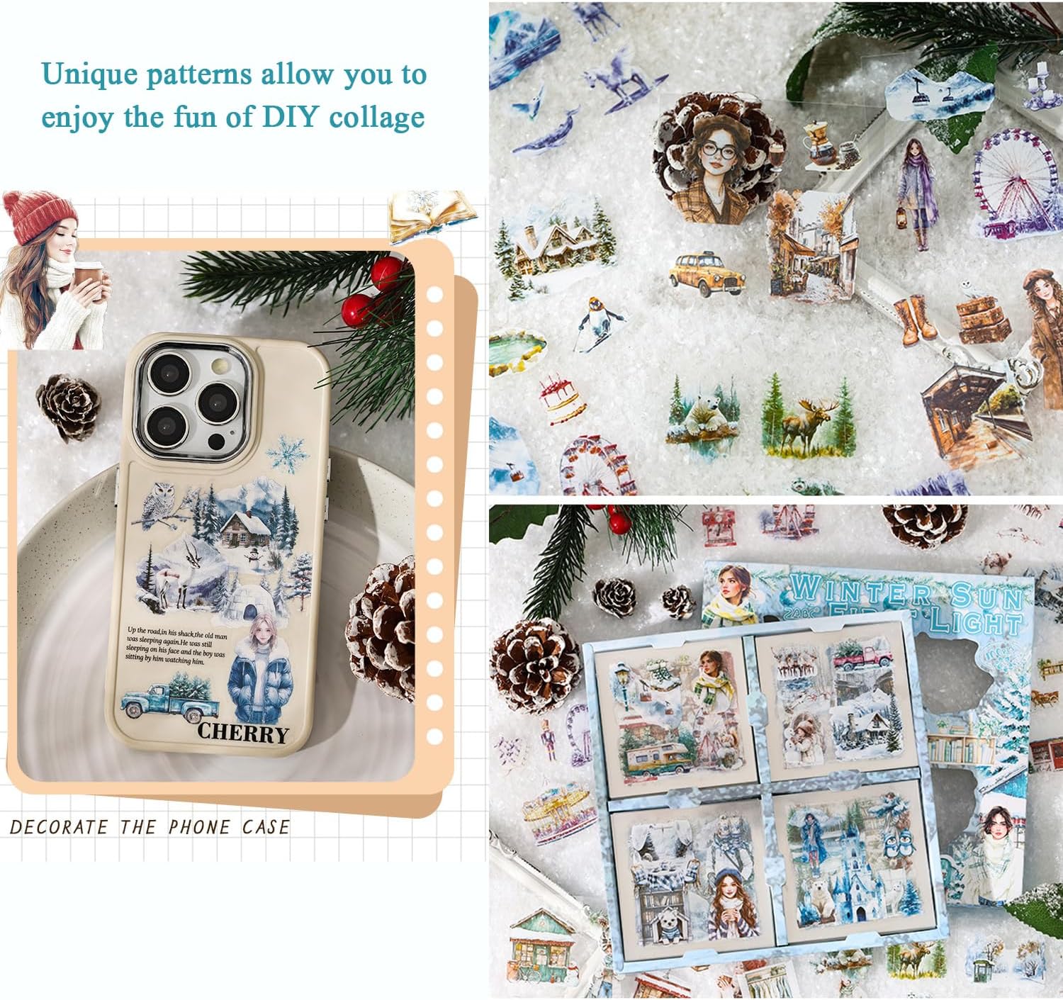 100 Sheets Retro Junk Journal Stickers - Transparent PET Decorative Girls People Flowers Stickers for Journaling Bullet Album Scrapbook Diary Planner Gift DIY Craft Laptop Phone Case