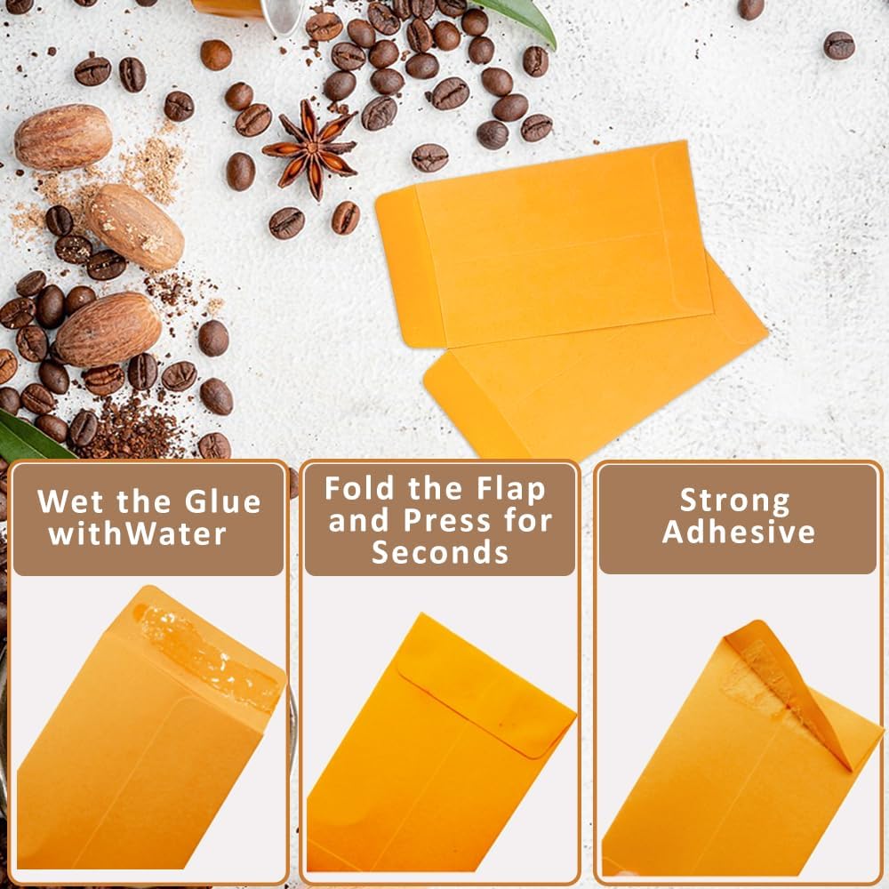 #1 800 Pcs Small Coin Envelopes 2.25" x 3.5" with Gummed Flap, Yellow Kraft Mini Envelopes for Storing Keys, Stamps, Seeds, Tips and Small Items (800)