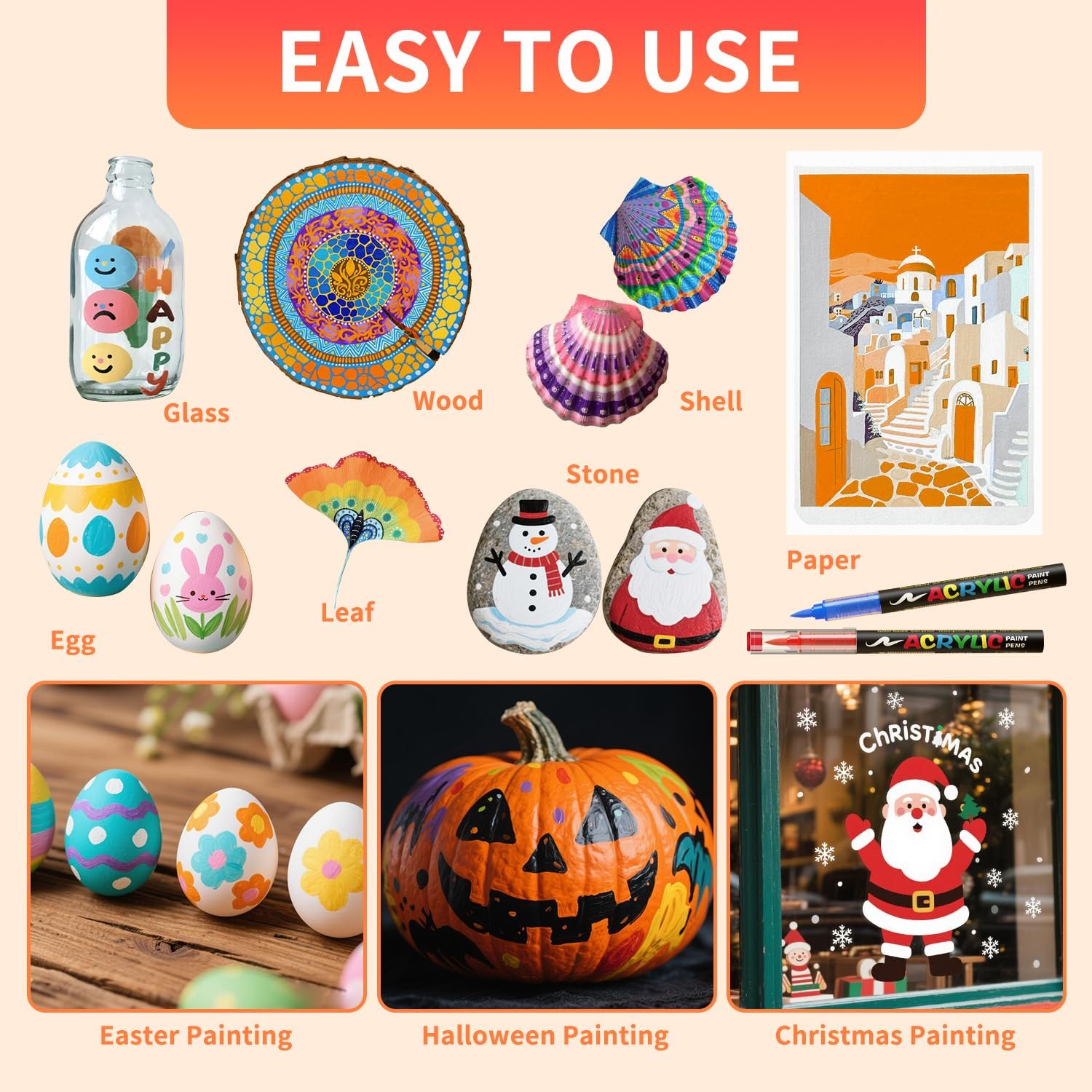 - Portable & Organized Packaging: Individually wrapped in a 5-layer pull-out case, these acrylic paint pens stay protected and organized. Theyβre travel-ready and designed for on-the-go use, without compromising ink longevity or color vibrancy