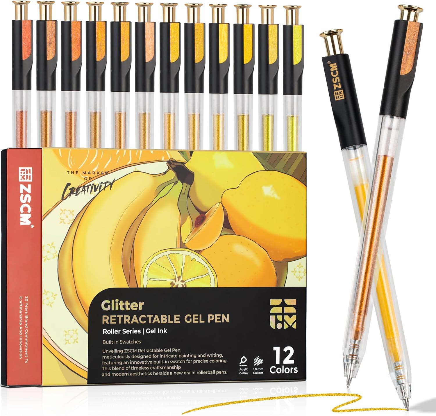 - 12 Stunning Yellow Glitter Shades:Bask in sunshine creativity with our ZSCM 12-color Yellow Glitter Pen Set, offering a radiant range from pale lemon to golden amber. With smooth retractable mechanism and 1.0mm precision tip, the high-opacity glitter ink solves the common yellow ink dilemma. Perfect for sunflower illustrations, happy planners, highlight notes, and summer scrapbooking. Light up your creativity!
