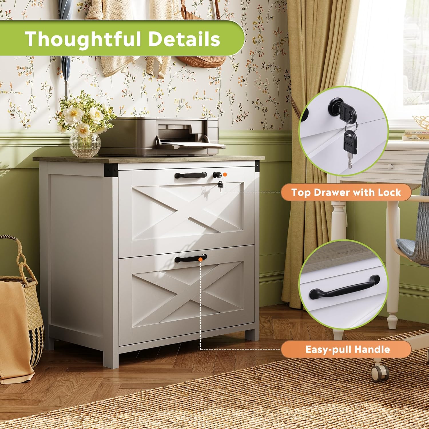 - Modern Farmhouse Design: The Devaise file cabinet features a distinctive X-pattern and sturdy legs that give it a charming farmhouse look. Its 2 large drawers offer ample storage, blending modern functionality with farmhouse style to fit various interior designs and add charm to your home/office.