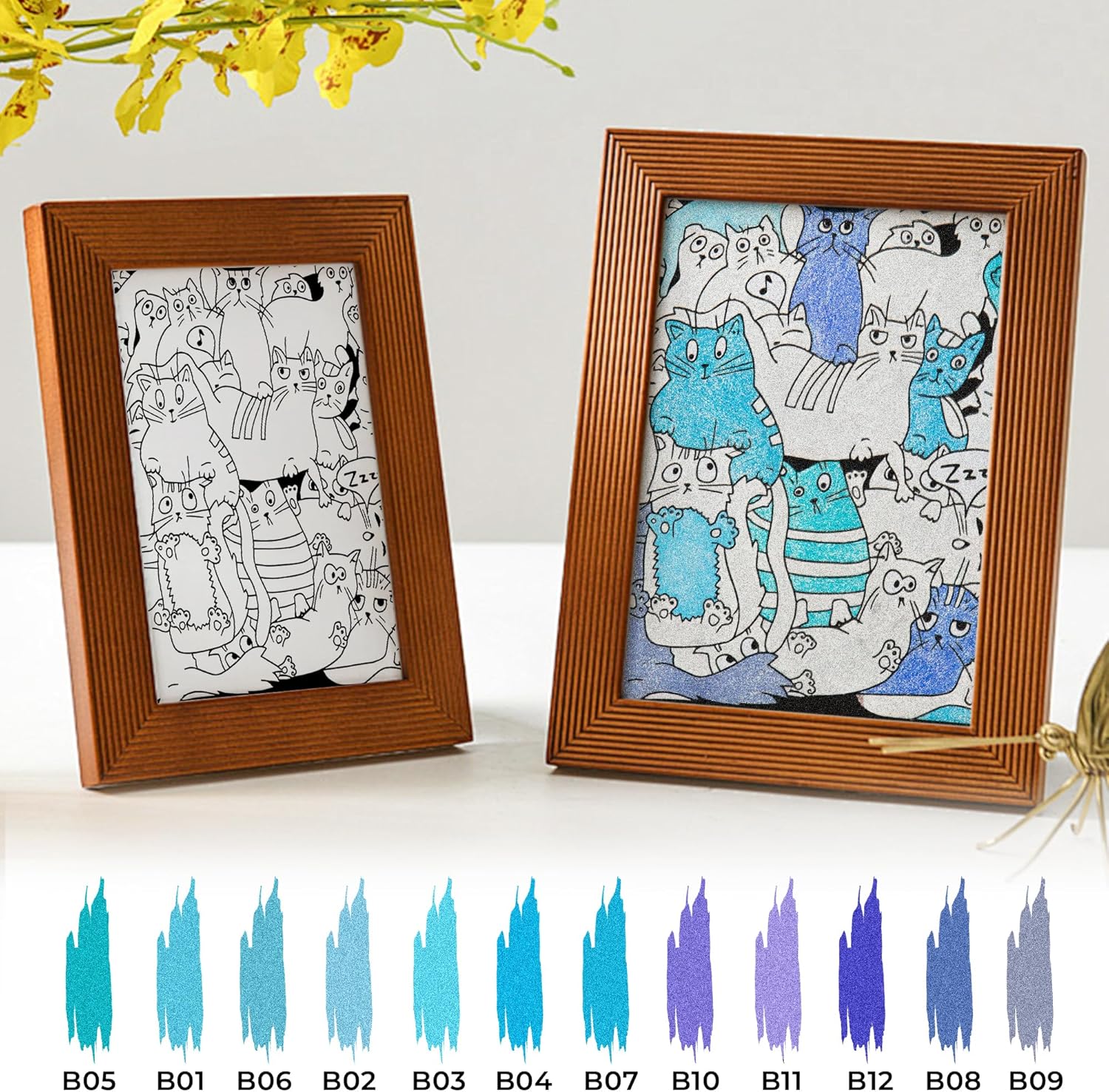 - 12 Mesmerizing Blue Glitter Shades:Dive into creativity with our Blue Glitter Pen Set's 12 oceanic shades. The retractable design and smooth 1.0mm tip create stunning watercolor-like effects for mermaid art, bullet journals and nautical themes. Vibrant glitter ink flows consistently without skipping.Perfect for creating ombre ocean waves or celestial backgrounds in your sketchbook, these pens maintain vibrant color intensity throughout their extended ink capacity.