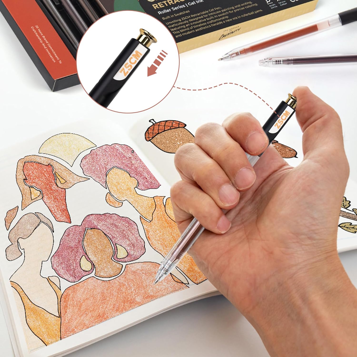Retractable Glitter Gel Pens, 12 Colors Large Capacity Skin Tone Glitter Metallic Gel Ink Pens, 1 mm Fine Point Smooth Writing Color Pens for Adult Coloring Book Note Taking Aesthetic Art Supplies